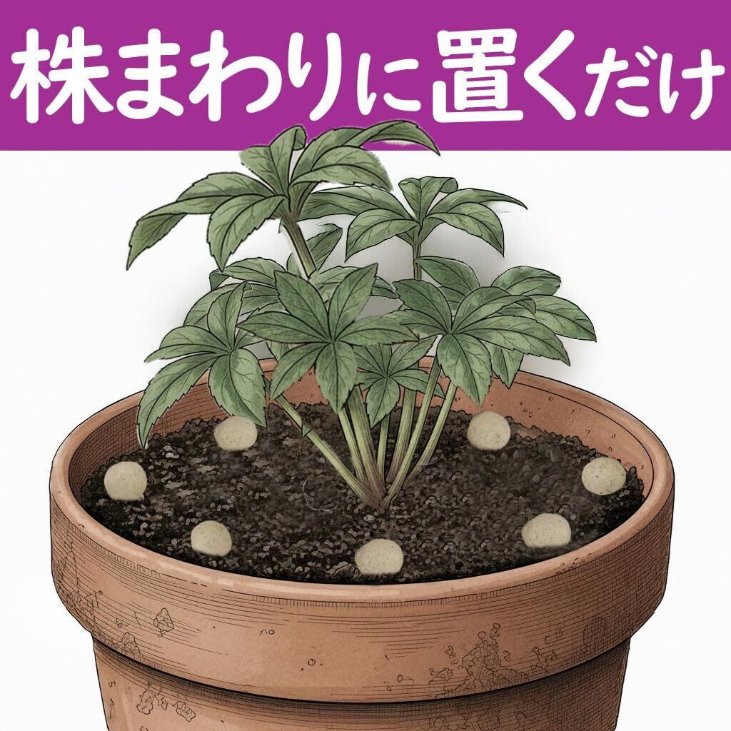 使用方法【施肥/9月~3月】 肥効期間は約1ヶ月。植え付け2週間後から、規定量を土の上に置き、1ヶ月経ったら、形が残っていても新しい肥料と取り替える