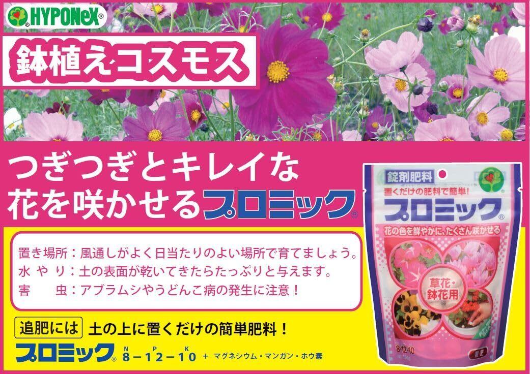 花つきを良くするリンサン成分と、株を丈夫にするカリ成分を多く含み、つぎつぎと花を咲かせます。