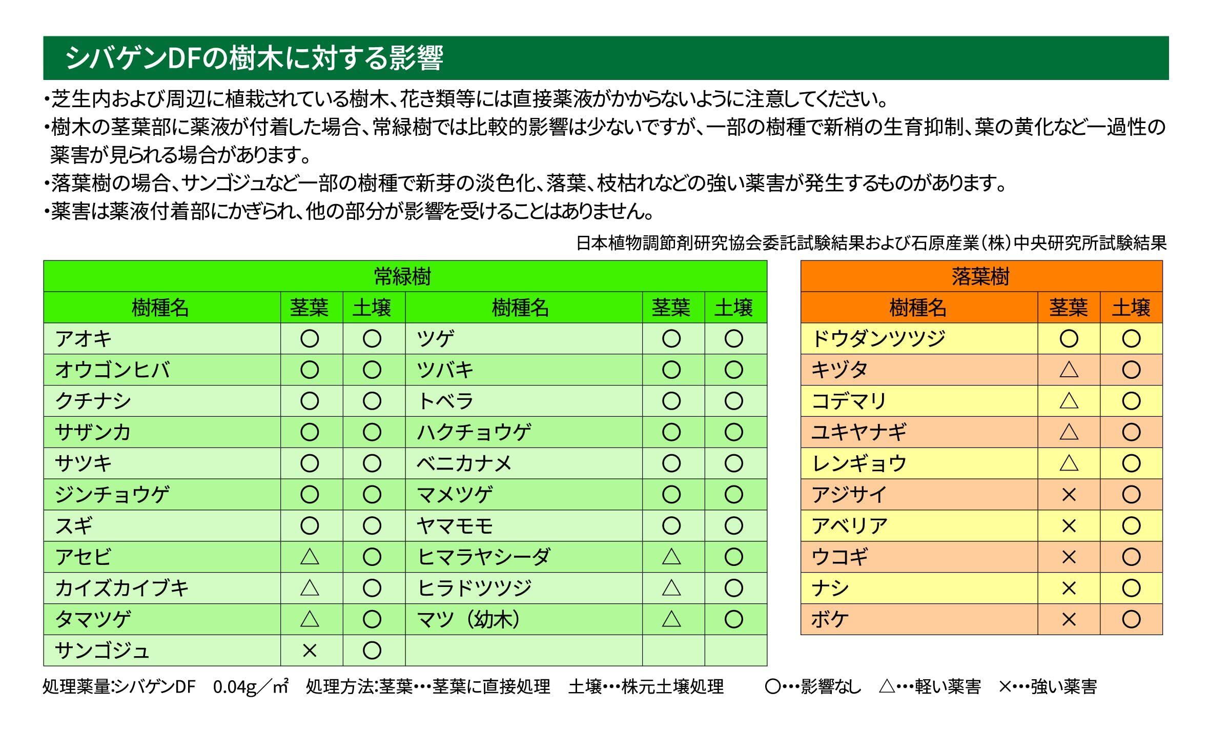 ●寒地型西洋芝では薬害を生じるので使用しないでください。特にゴルフ場で寒地型西洋芝を使用しているグリーンやティーグランド周辺では使用しないでください。