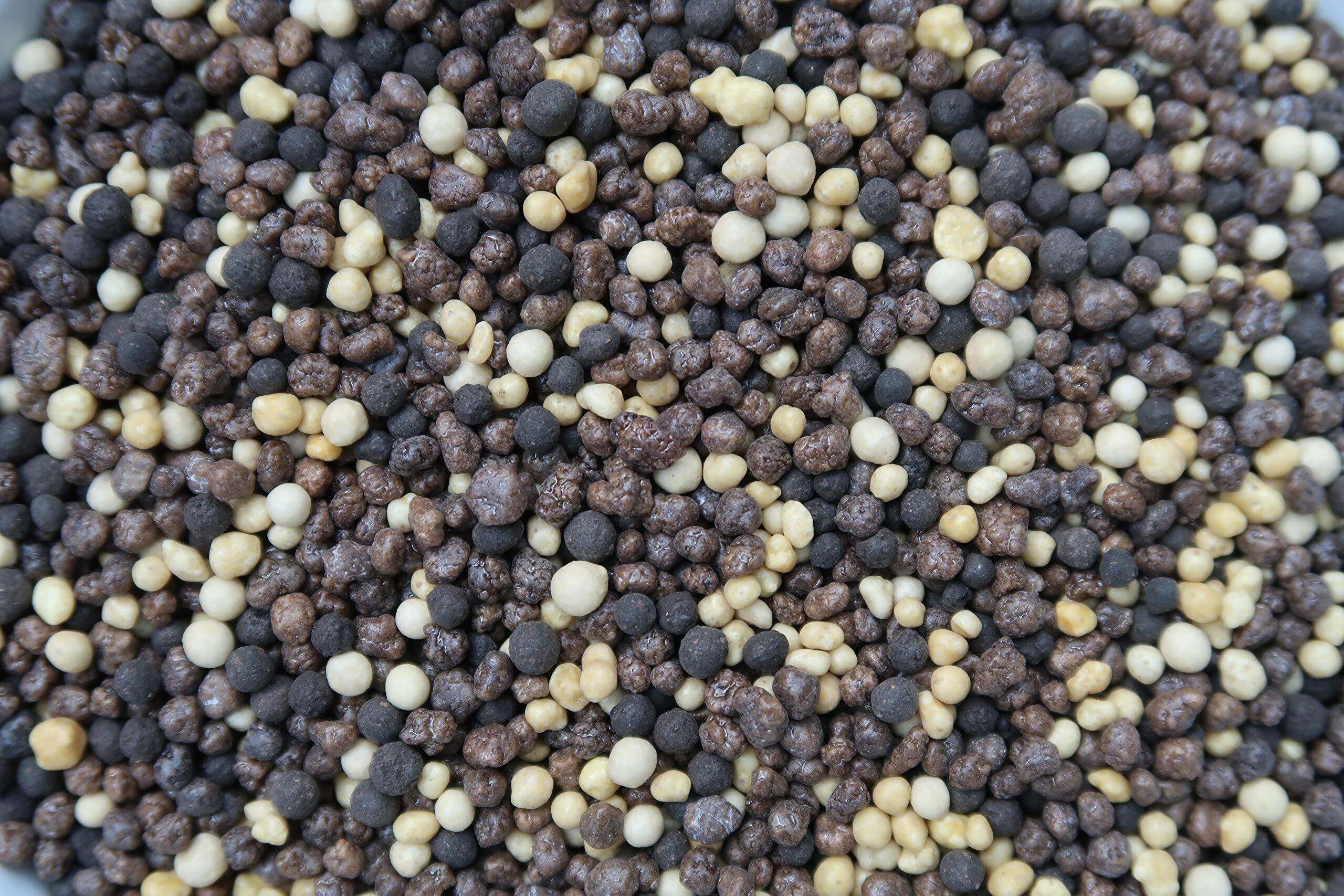 原料に天然の鉱物を使用しているため、配合された一部の砿で、製品ごとに色が異なる場合がありますが、肥料効果には影響ありません。
