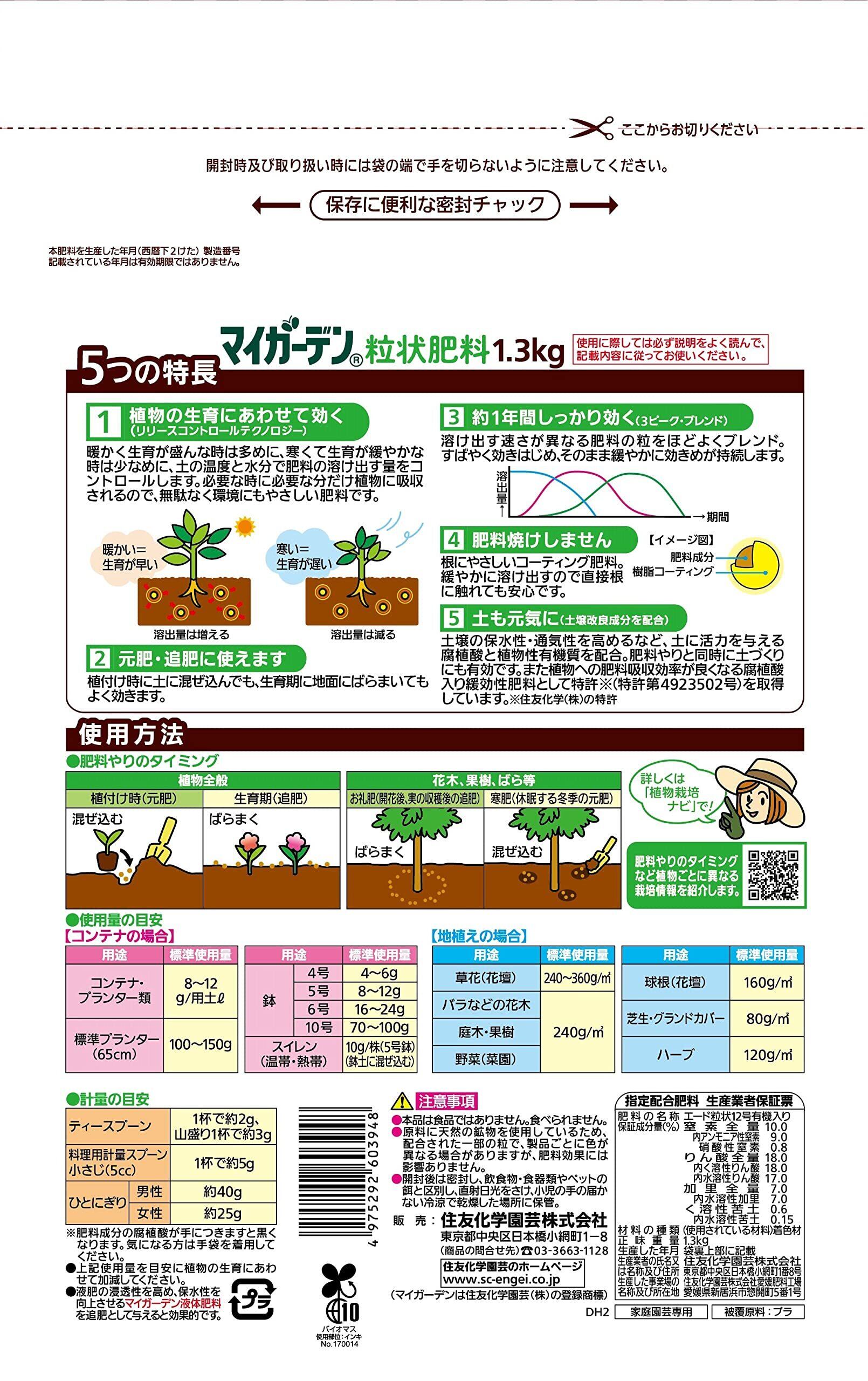 【新着商品】住友化学園芸 肥料 マイガーデン粒状肥料 1.3kg 粒状 元肥 追肥 土壌改良