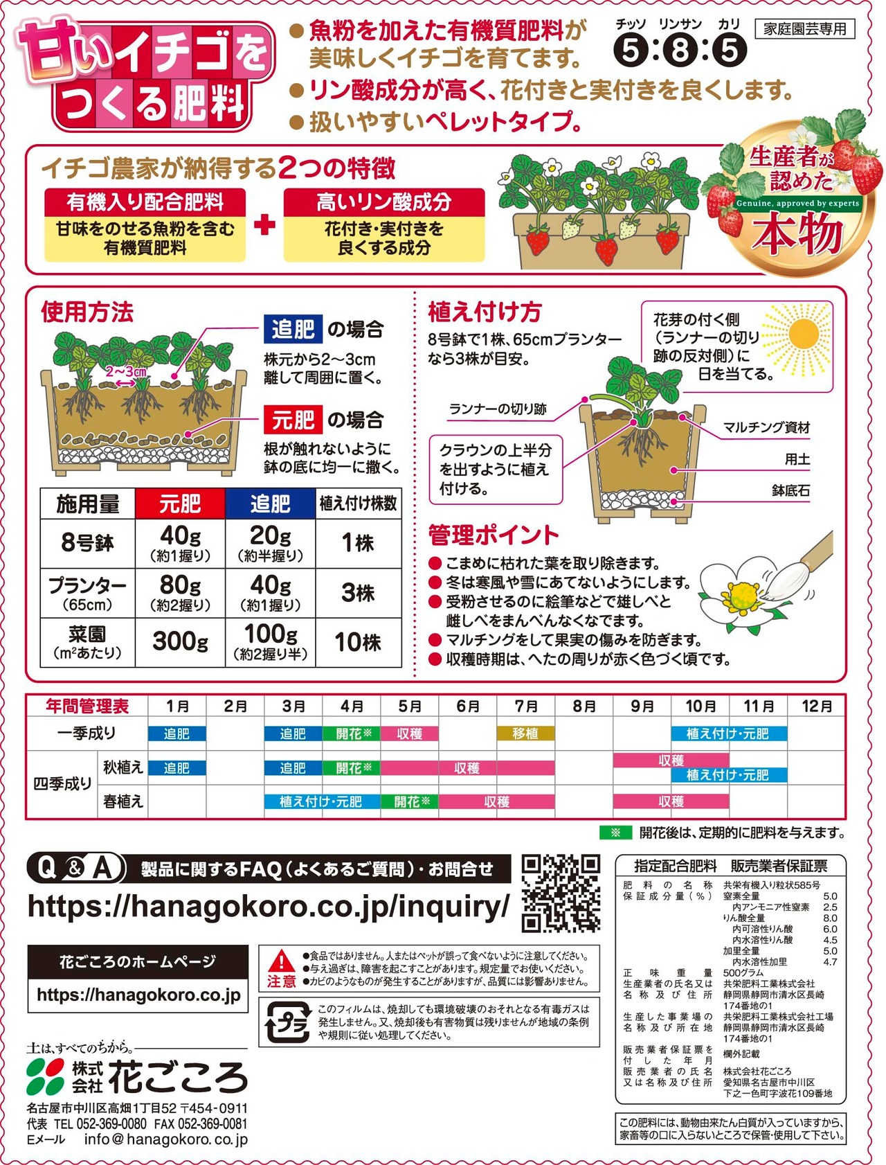 花ごころ 甘いイチゴをつくる肥料 生産者が認めた本物 500g