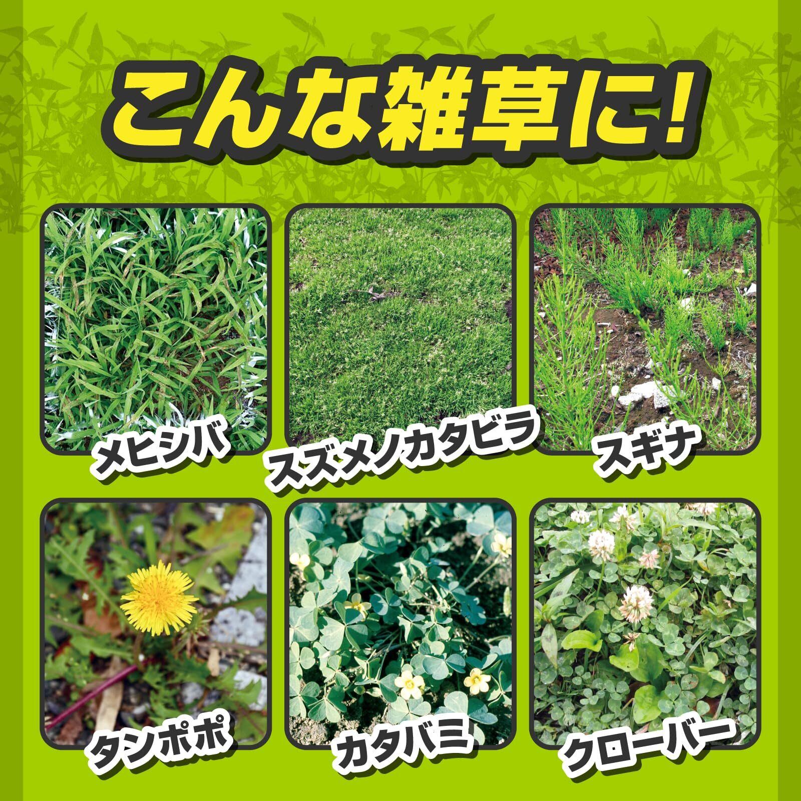 芝生内のメヒシバ、スズメノカタビラ等の一年生イネ科雑草や、オオアレチノギク、カラスノエンドウ等の退治に効果的