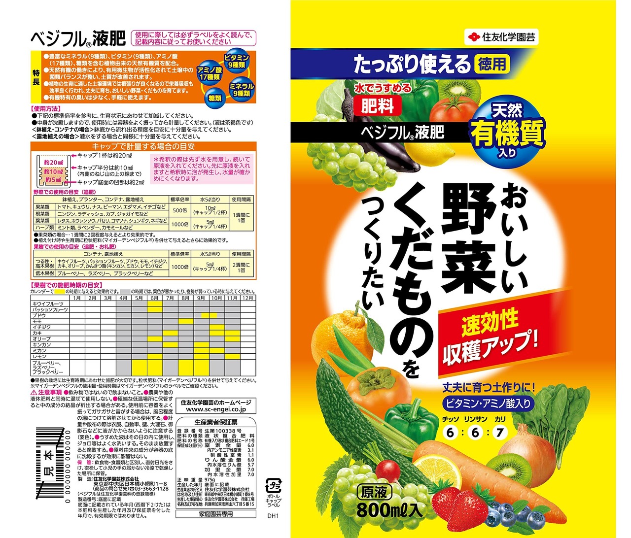 住友化学園芸 肥料 ベジフル液肥800ml 液体 有機 野菜 果樹 果物 くだもの