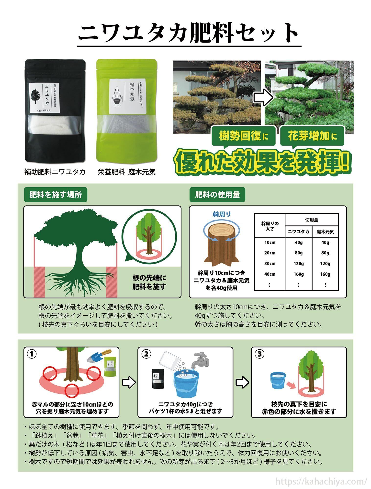 弱った植木の樹勢回復に ニワユタカ肥料セット 120g(鉢植には使用しないでください)