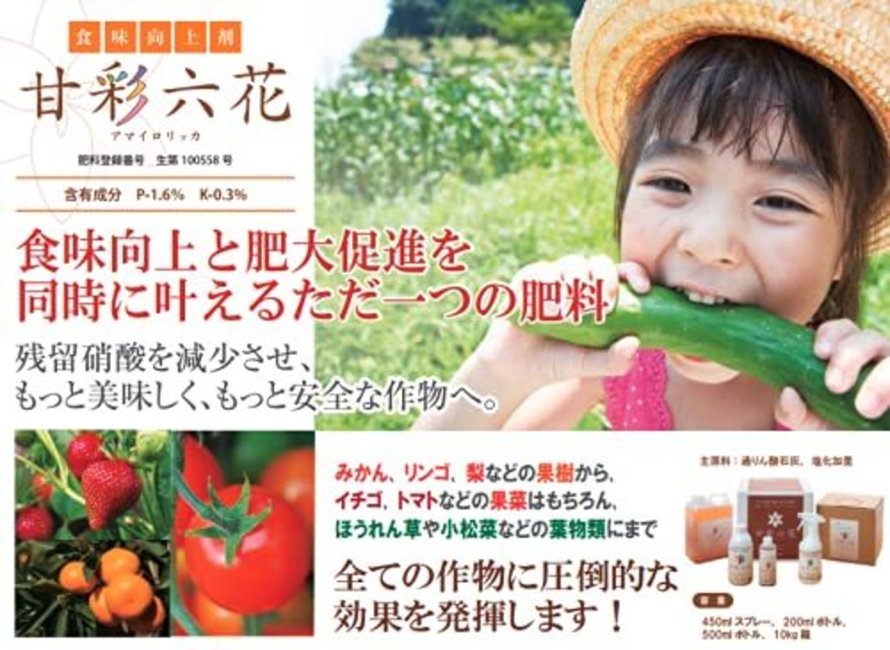 活根彩果はる次世代の発根剤です。肥料の栄養成分を特殊技術により発酵酵素でコーティングし、界面活性化させることで、高効率で作物に作用します。