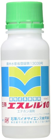 天然の植物ホルモン「エチレン」の作用をそのまま現わすホルモン剤ですので収穫物の品質は本質的に何ら変化することはありません。