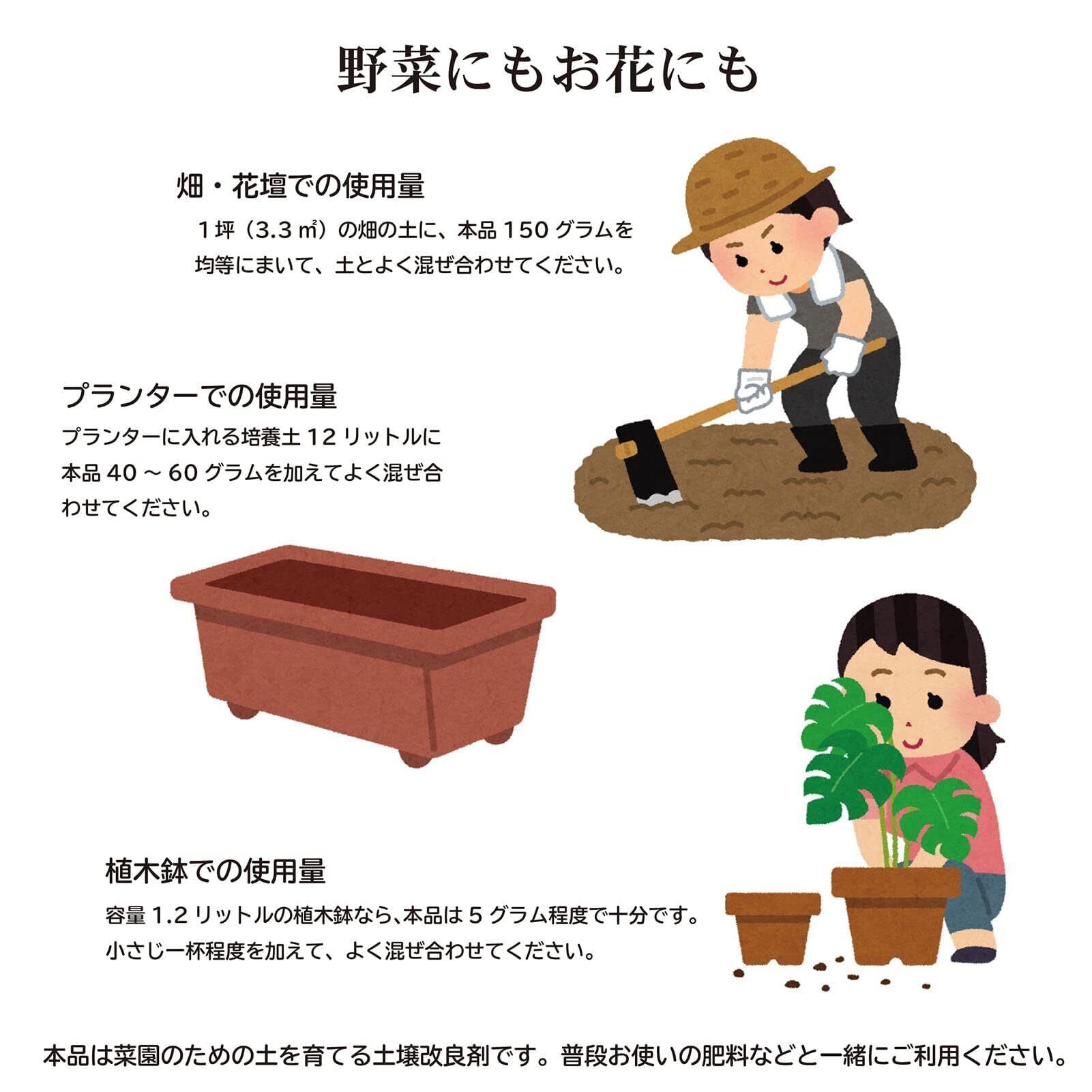 腐植酸と「フルボ酸」を、ギュっと凝縮して乾燥させた「土壌改良剤」です。土壌に含まれるミネラルなどの栄養を、根や葉、茎と植物の隅々まで効率良く届けます。