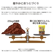 本品の500グラムが、25キログラムの完熟堆肥と同等の腐植を供給します。臭いの強い完熟堆肥を大量に保管する必要もありません。