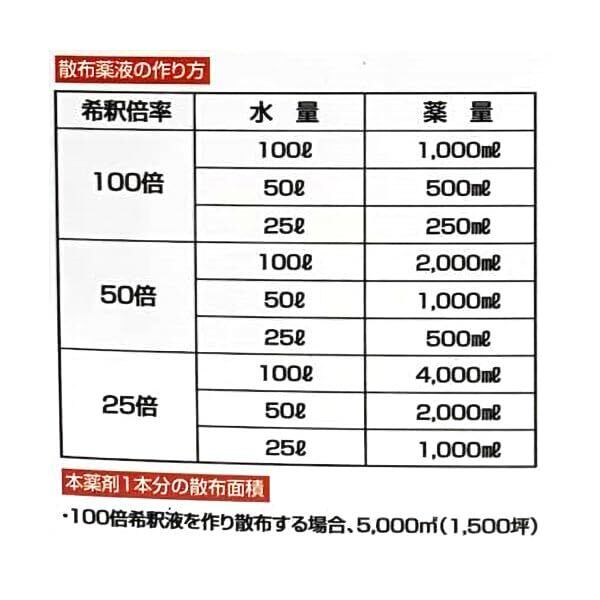 葉と茎に直接噴霧してください。農作物や植物の栽培・管理には使用しないでください。広い範囲で使用してください。