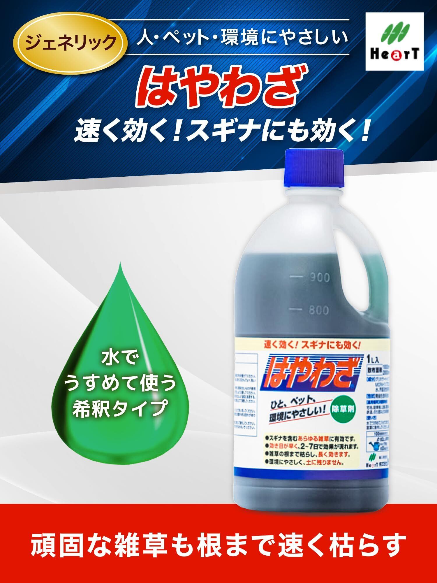 【特別価格】ハート(Heart) はやわざ 1L 除草剤 液剤 原液 ジェネリック 頑固な雑草 速効 根まで枯らす 笹 スギナ 宅地 駐車場 公園