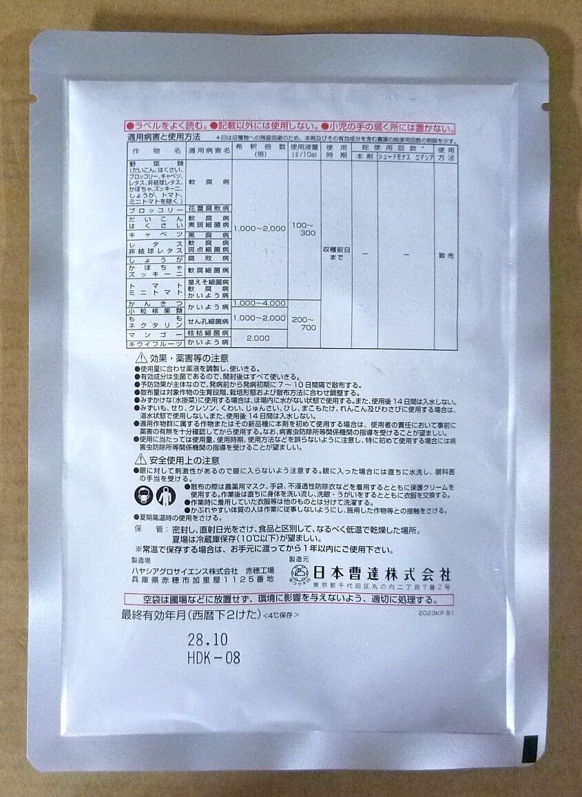 ・多くの殺菌剤や殺虫剤との混用が可能で、混用できない薬剤も1日以上空けての交互散布(近接散布)は可能