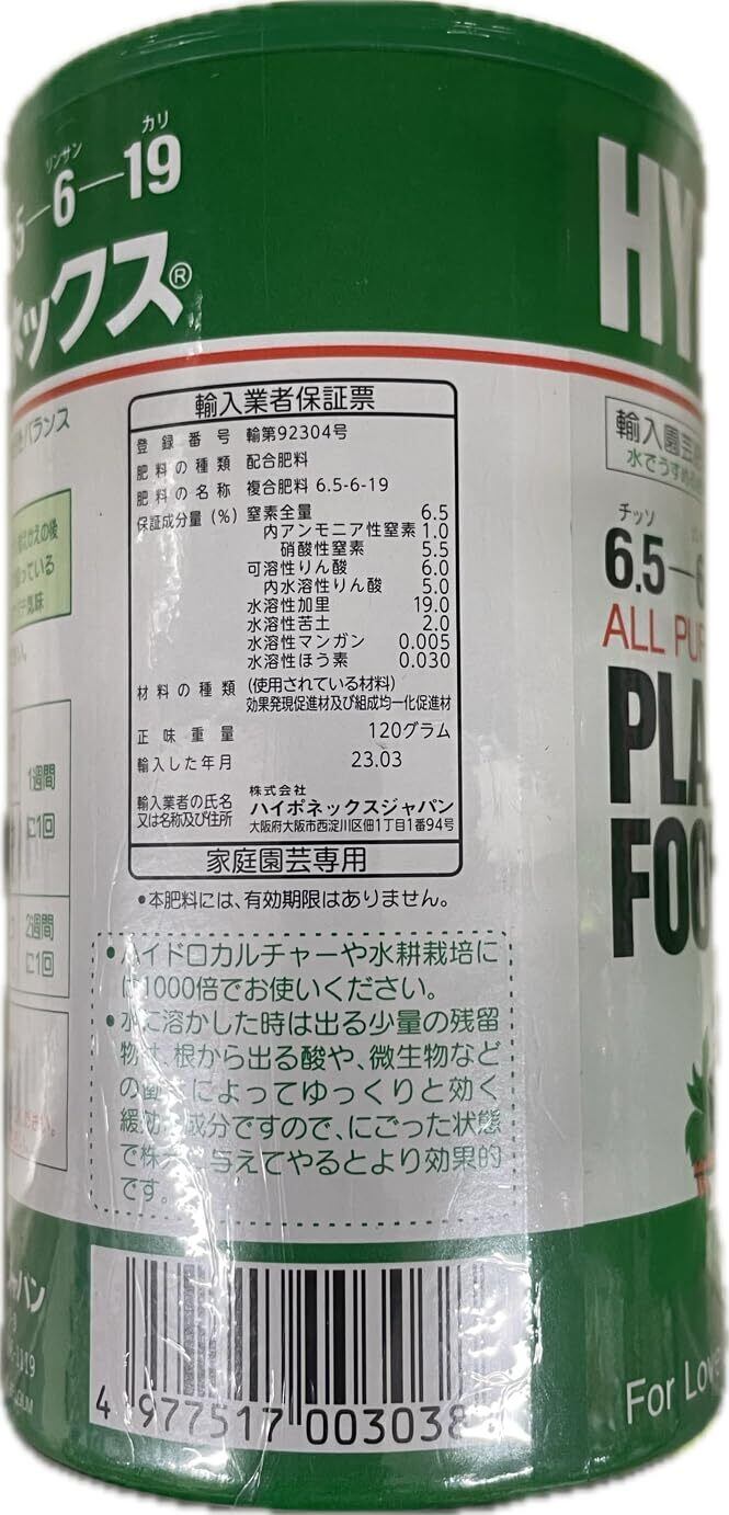 【人気商品】ハイポネックスジャパン 肥料 微粉ハイポネックス 120g
