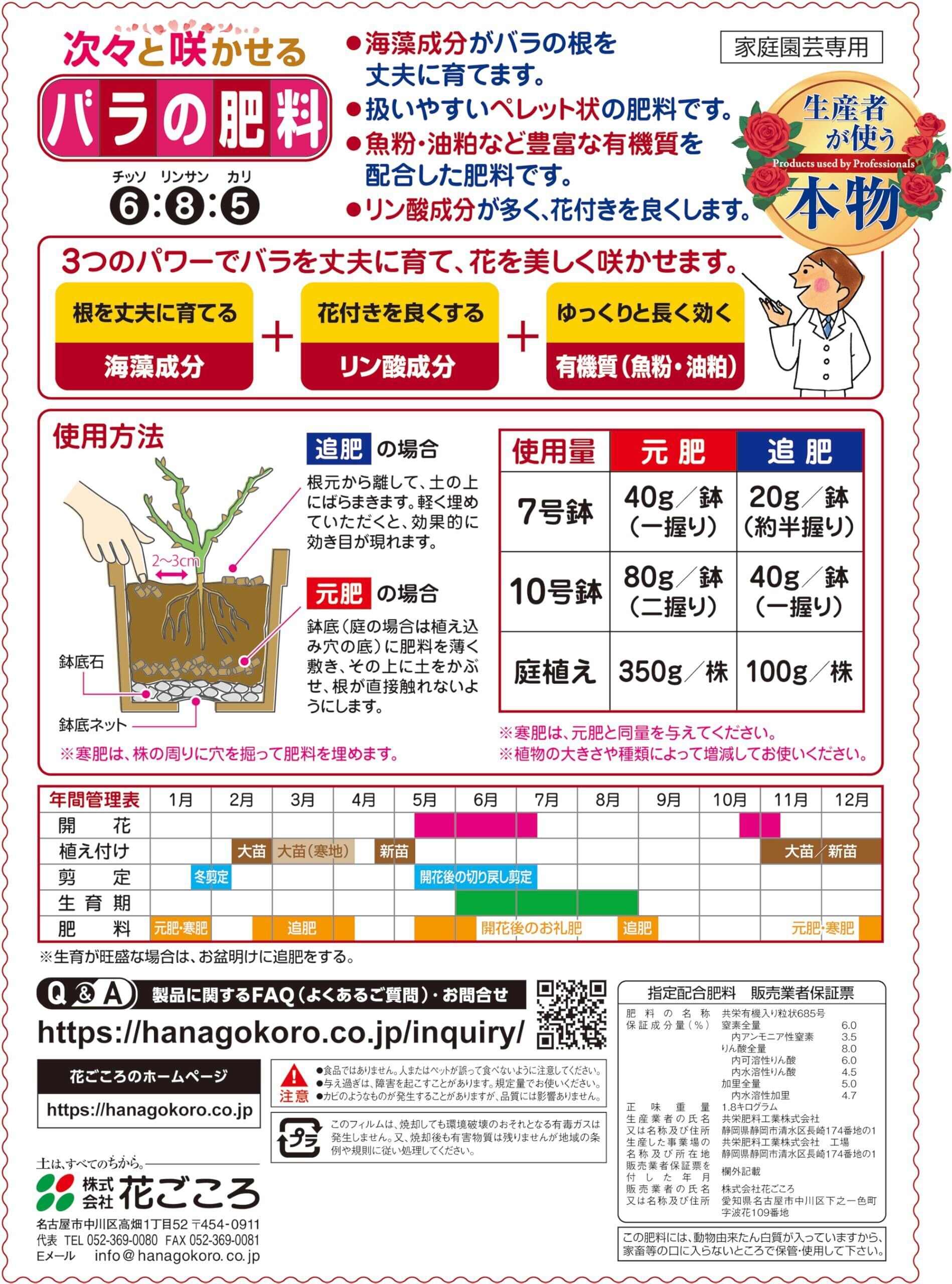 花ごころ バラの肥料 生産者が使う本物 1.8kg