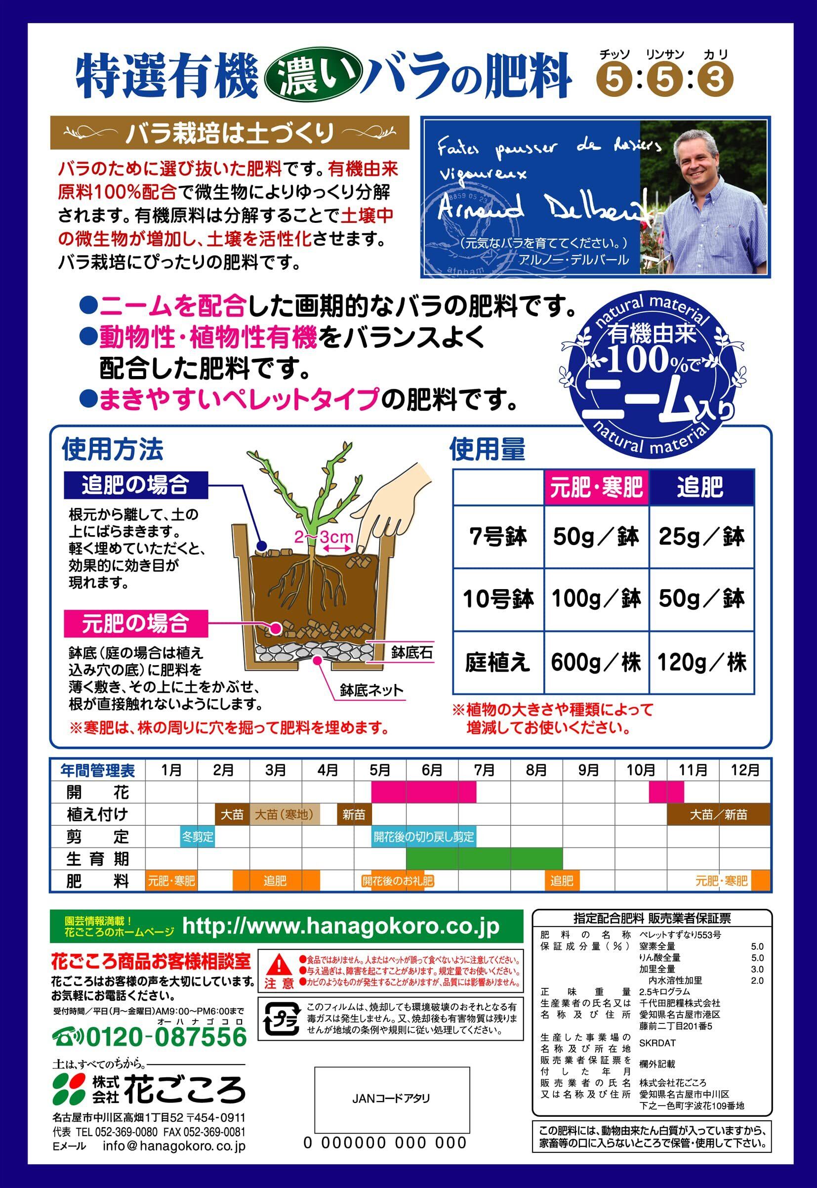 【特別価格】花ごころ 特選有機 濃いバラの肥料 ニーム入り 2.5kg