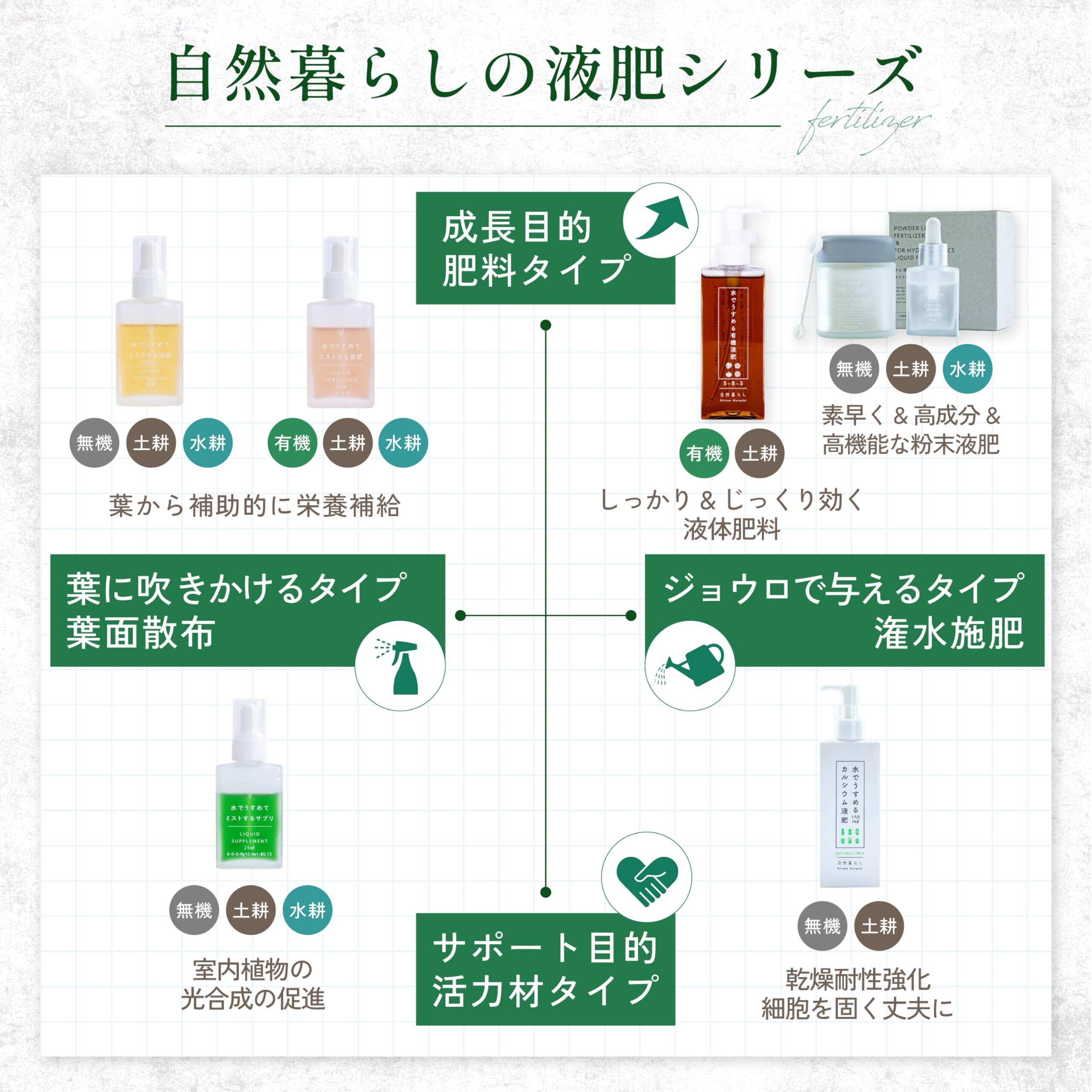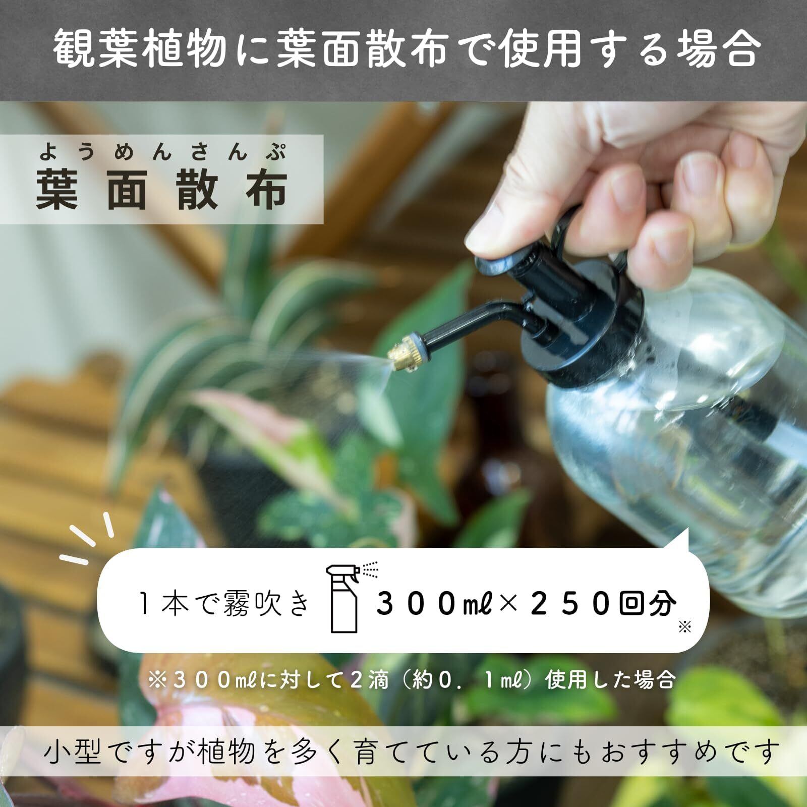 観葉植物や多肉植物、草花など「葉」を主体とした植物の生育をサポートするための葉面散布に最適な肥料 植物をすばやく元気に、葉の色を鮮やかに育てる