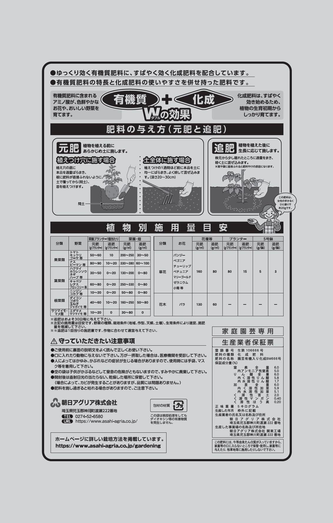 肥料 花 野菜 有機 有機化成肥料666 5kg 化成肥料に有機をプラスしたお花、野菜、あらゆる植物に使用できる肥料