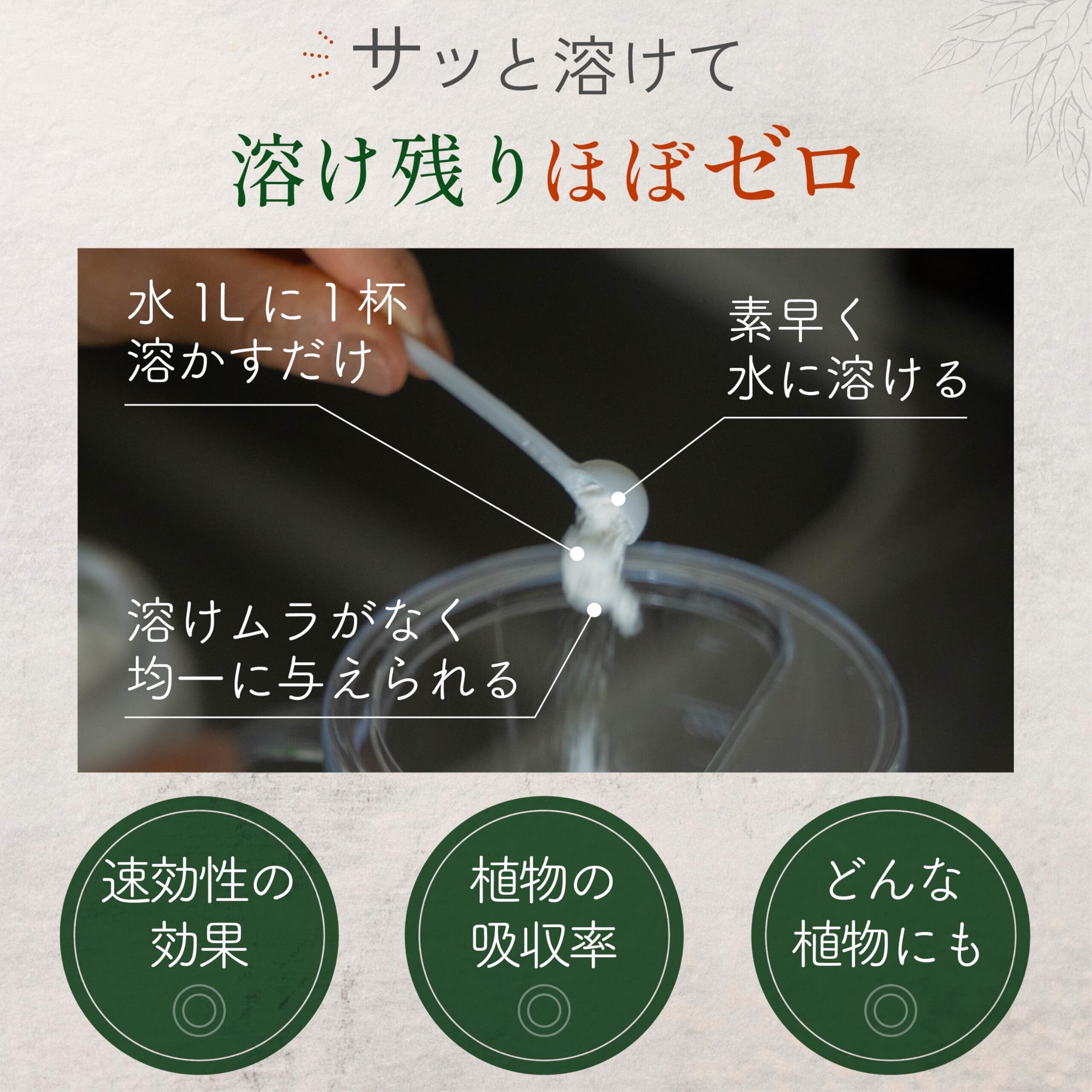 粉末 は水に素早く溶け、栄養を植物へ迅速に補給可能