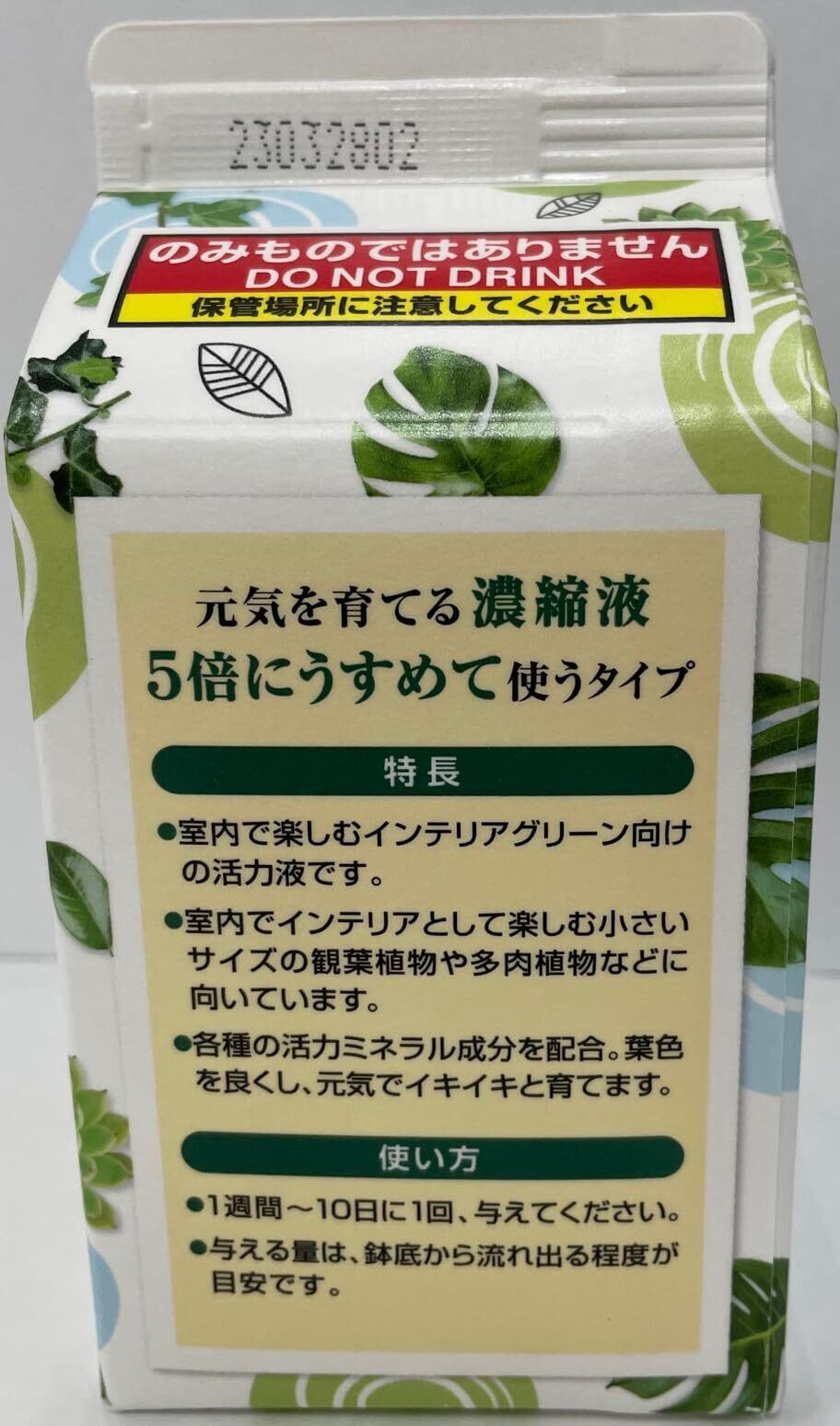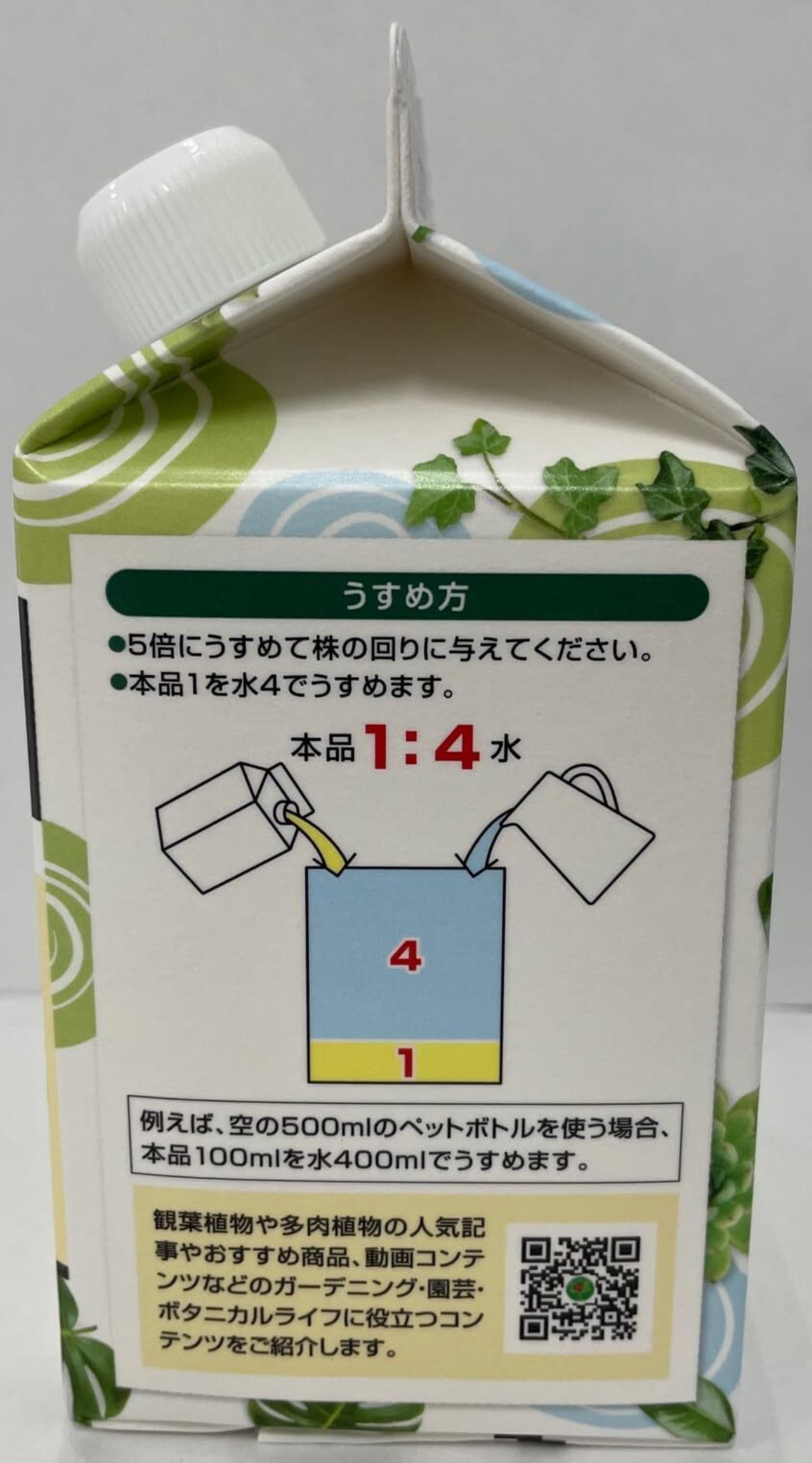 5倍にうすめて株元に与えるだけで、葉色を良くし元気でイキイキと育てます。
