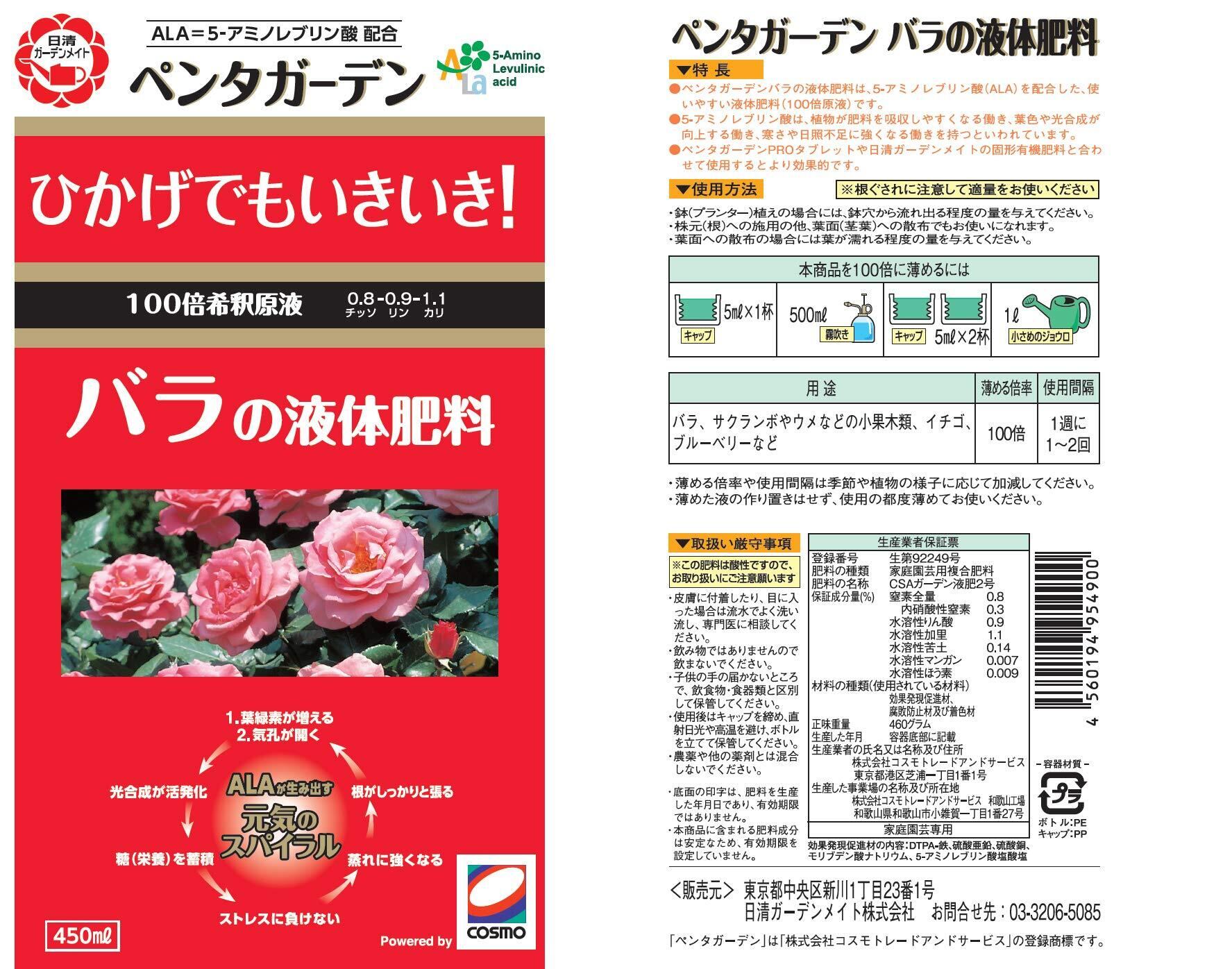 日清ガーデンメイト ALA入り肥料 ペンタガーデン 450ml バラ用