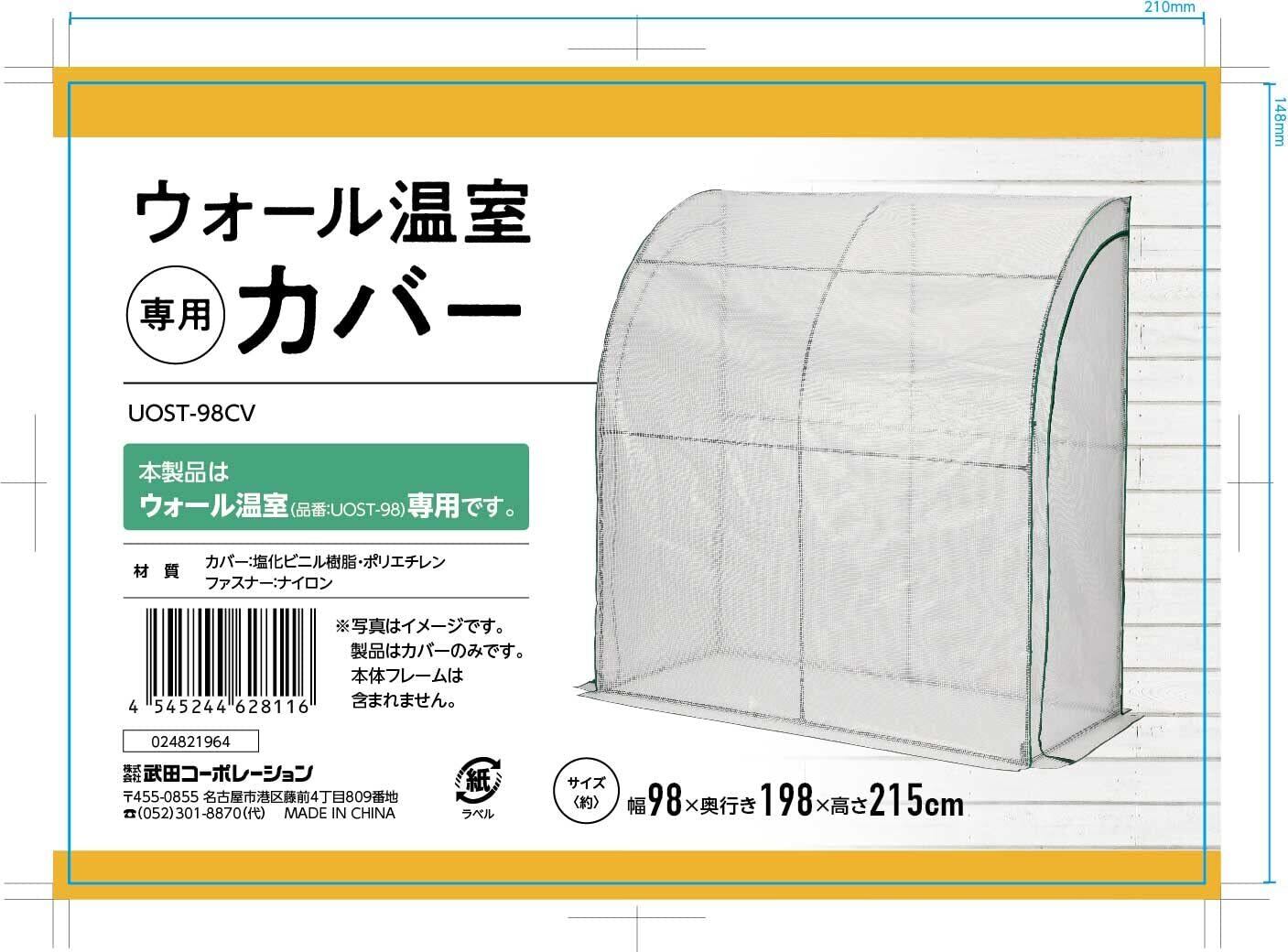 武田コーポレーション 温室・ビニールハウス・園芸 グリーン 98×198×215cm ウォール温室カバー UOST-98CV