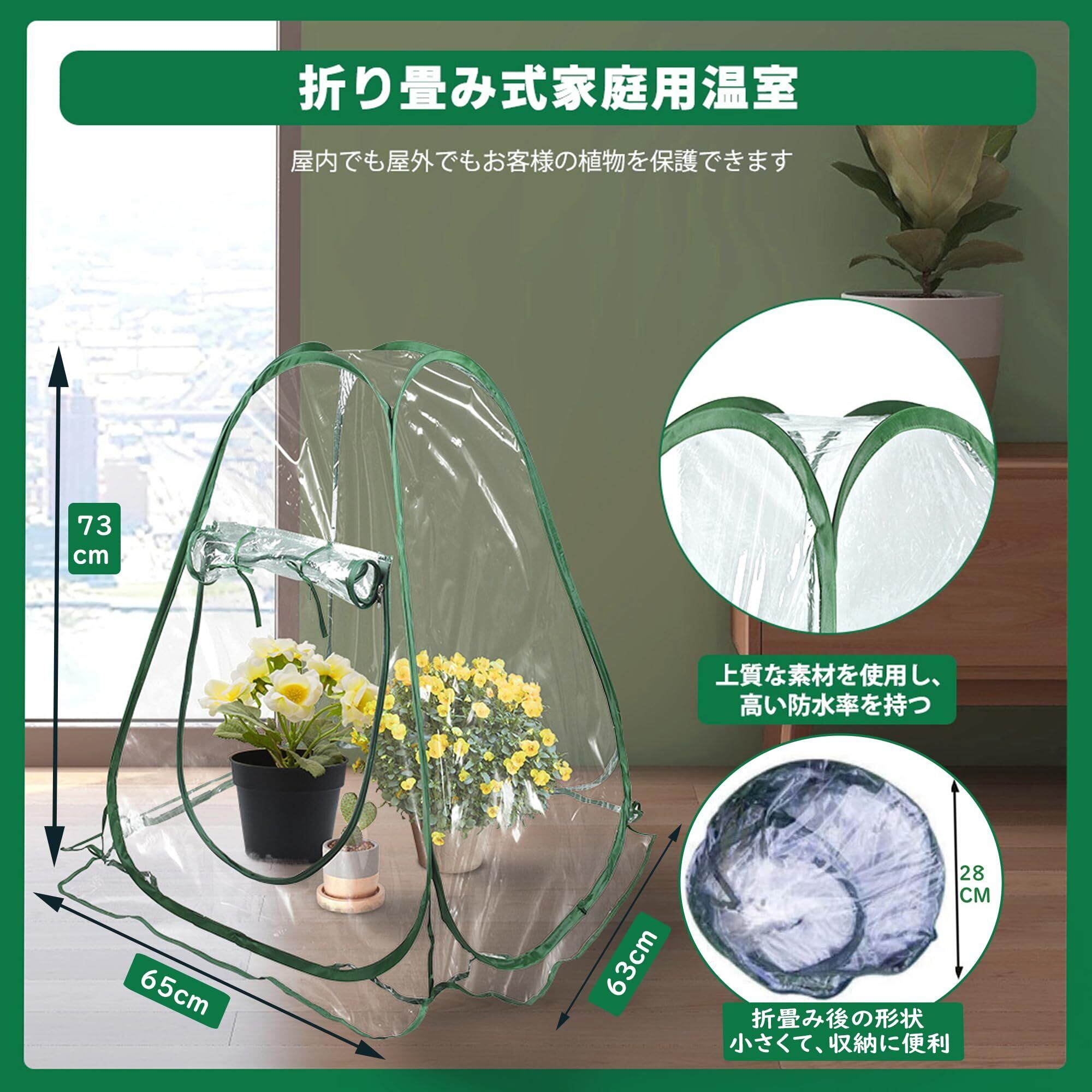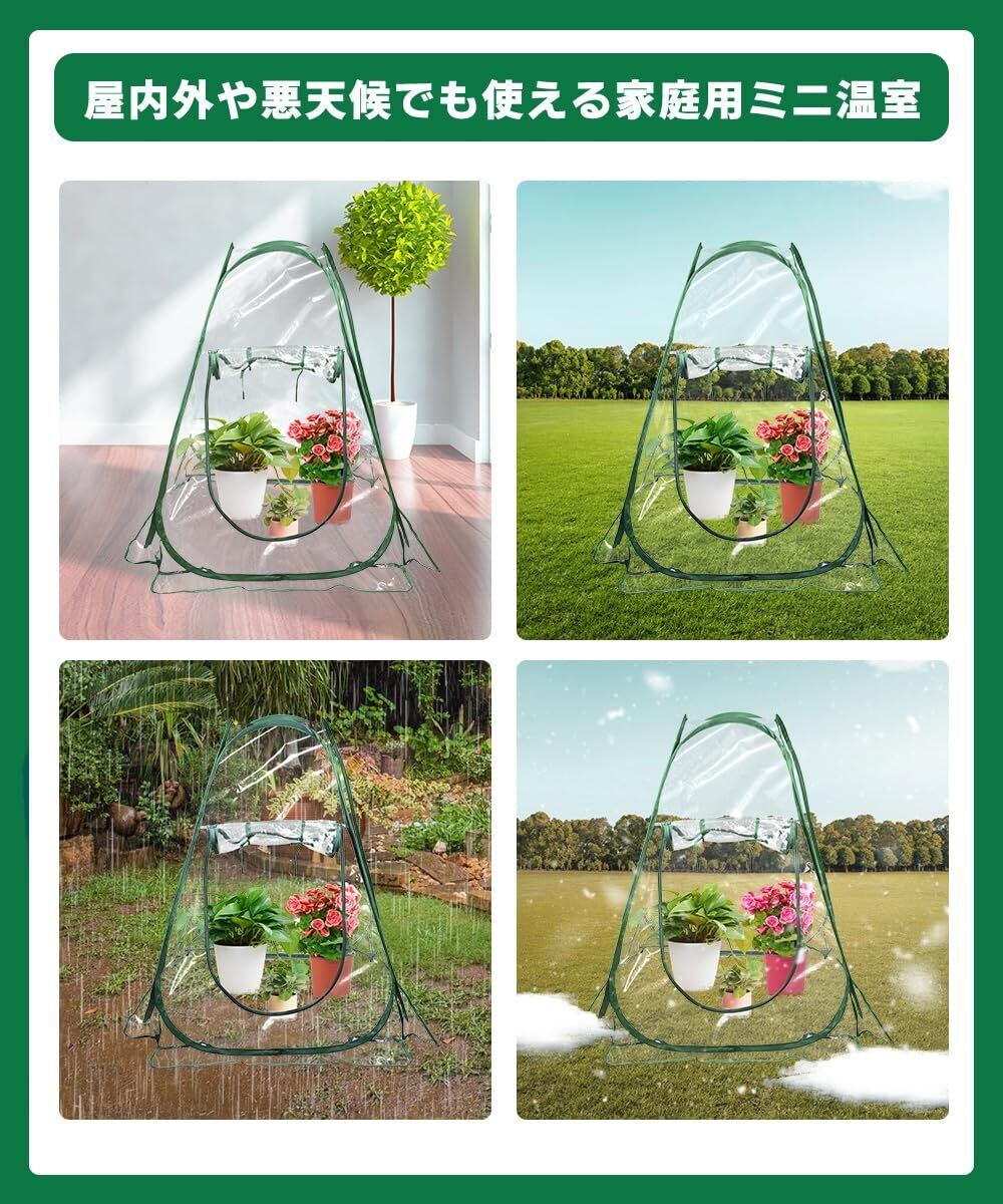 【高品質のPVC素材】この折畳み式植物温室は耐久性のあるPVC素材を採用し、高い防水率を持ち、強い雨に見舞われても、水の浸入を防ぐことができます。サポートロッドも靭性が高く、壊れにくいです。