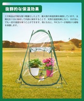 【拔群的な保温効果】PVC透明カバーは晴天時、日光の熱を十分に吸収して温室テント内に集めて保存することができ、最大限の保温効果を確保しています。天然の温室効果となり、日が沈んでも一定の温度を保つことができます。夜になると、PVCビニールハウスが風雨から植物を保護します。
