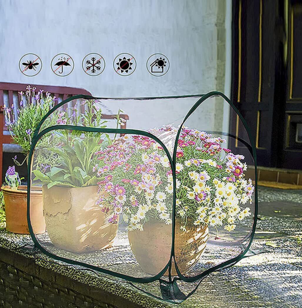 【防水&抗UV】防水、抗UV、庭の温室は暖かく保つことができ、寒さや吹雪から植物を保護して、植物の保育園にもっと快適な空間を提供します。植物と花がより多くの日差しを吸収して、植物の成長のために十分な余地を提供します。【サイズ】80×80×80cm。