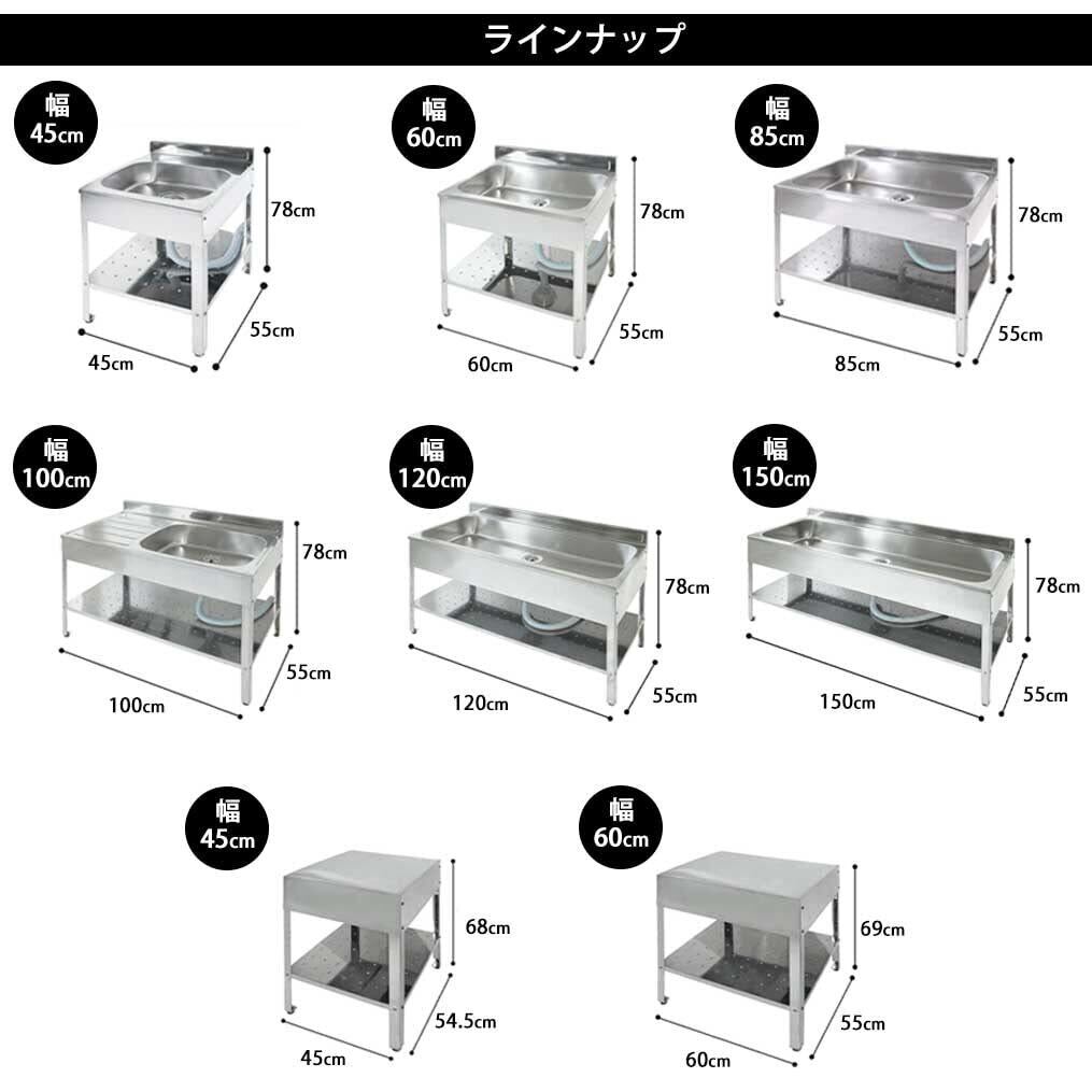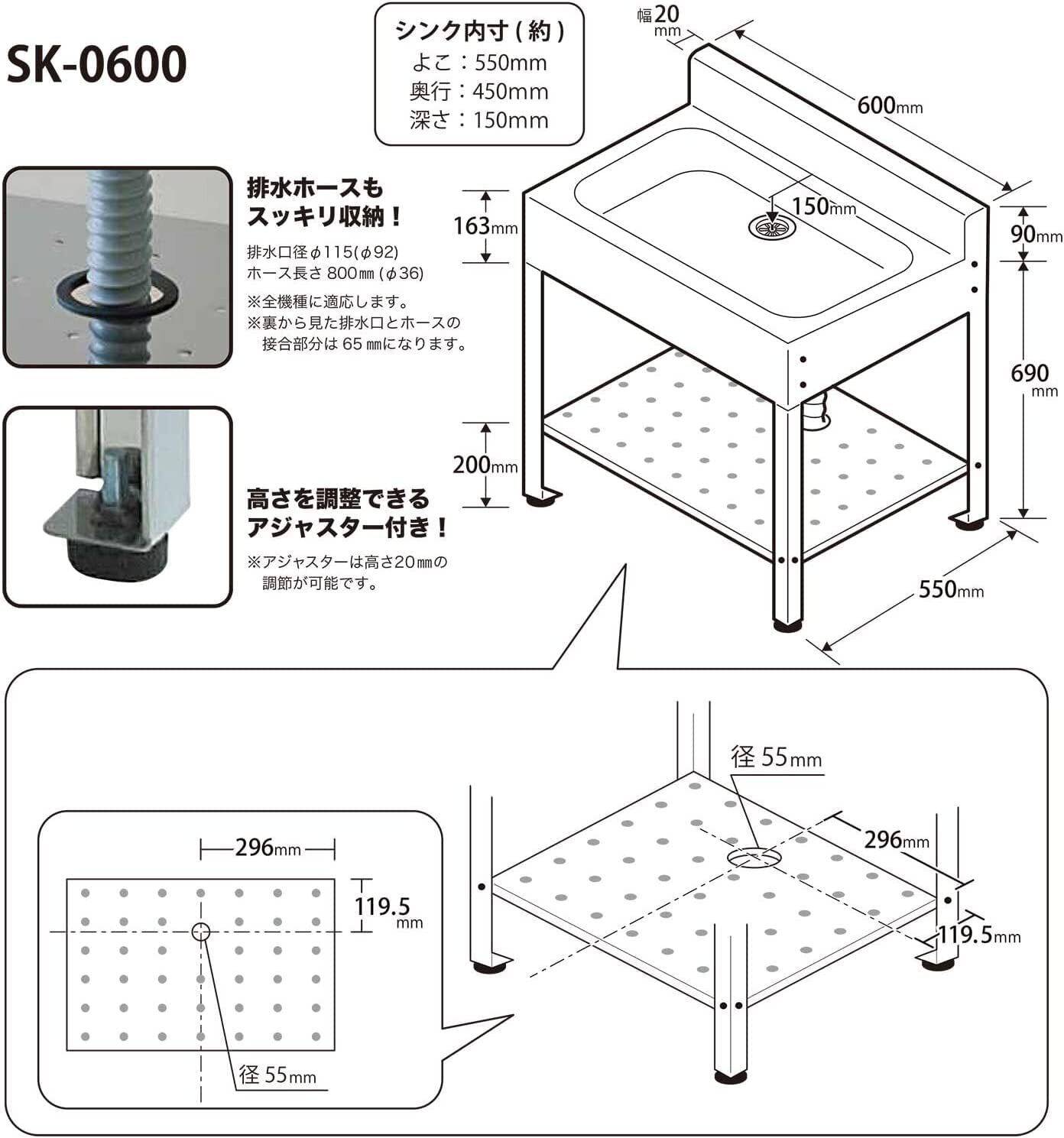 サンカ 錆びにくいステンレス製 シンクが深い 簡易流し台 屋外 アウトドア用 600 SK-0600 日本製 シルバー 幅60cm
