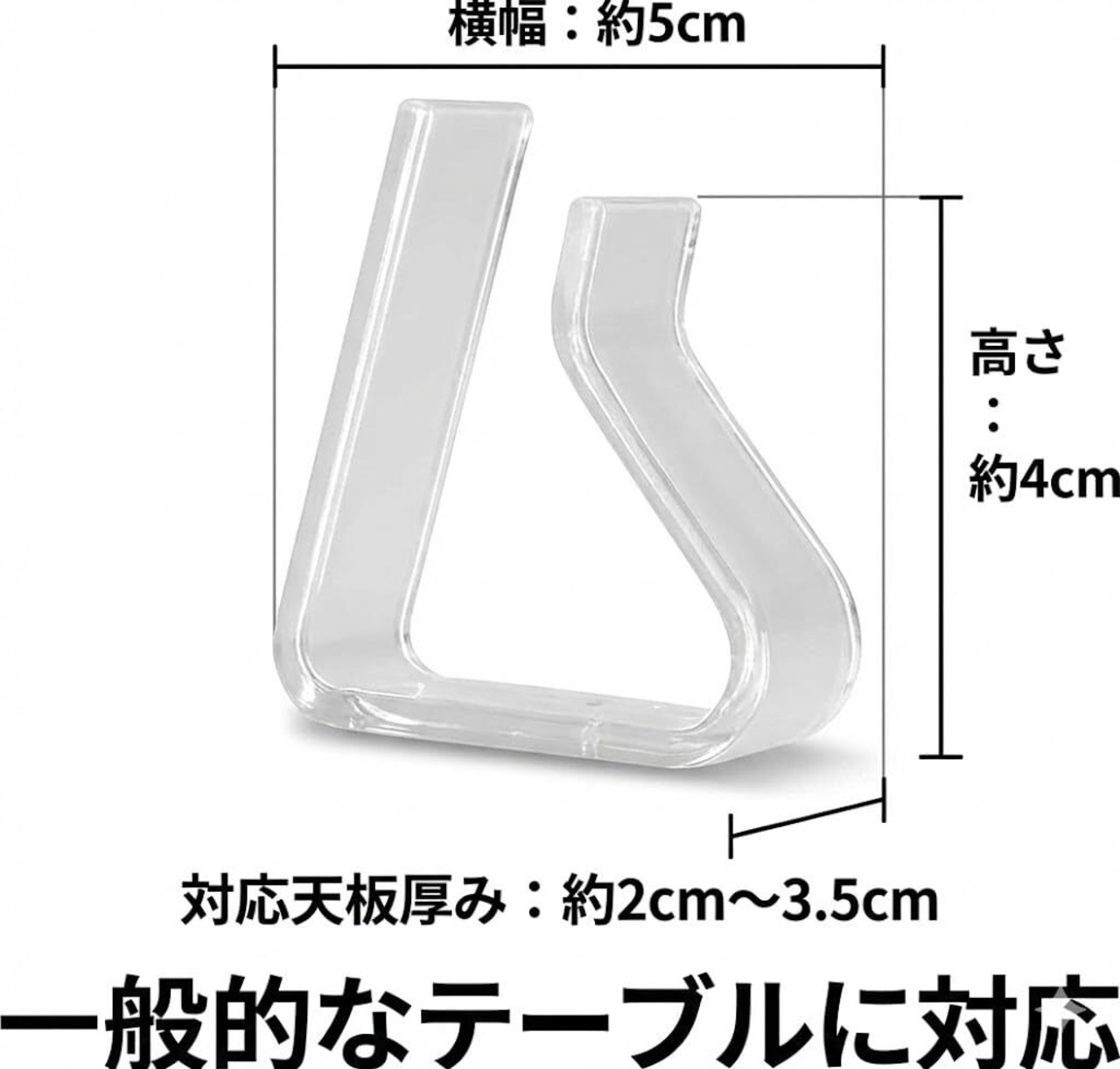 【注意点】 ・テーブルの厚みによって、うまく使えないことがありますため、予めご了承ください。 (※2cmから3.5cmまでの厚み対象) ∟テーブルが薄すぎるとうまく挟むことができません。 ∟無理して広げようとすると、折れる可能性があります。