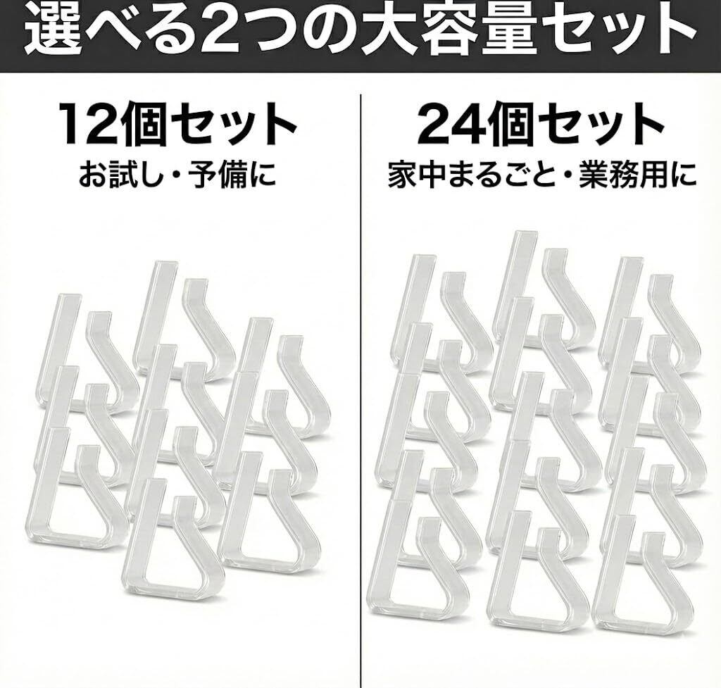 【商品内容】 ・挟むだけ簡単!お得な12個セット! ・お気に入りのクロスの邪魔しない!透明なクリップ!