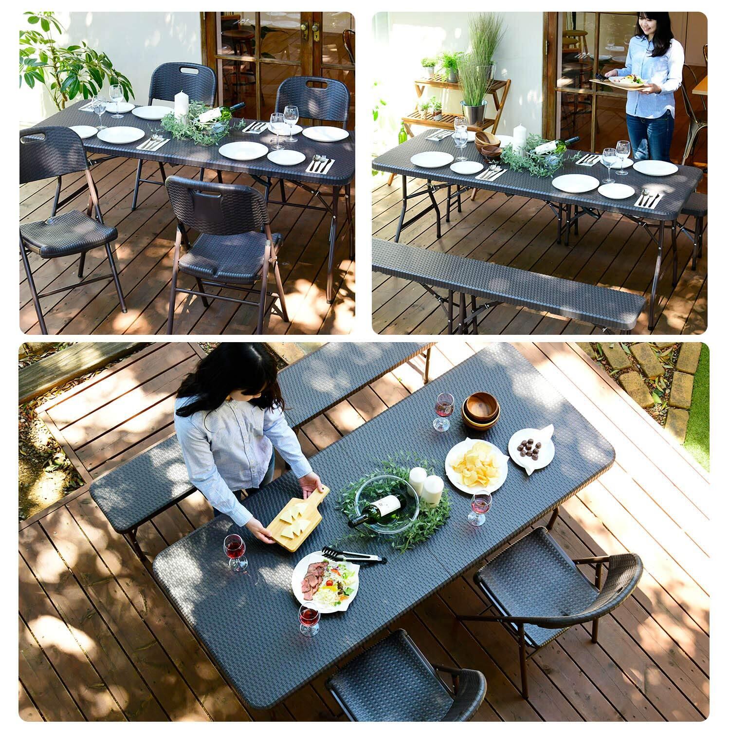 ガーデンマスター(Gardenmaster) 折りたたみガーデンテーブル 幅180×奥行76×高さ73cm ウィッカー調 お庭 ベランダ テラス バルコニー ダークブラウン HFT-1876