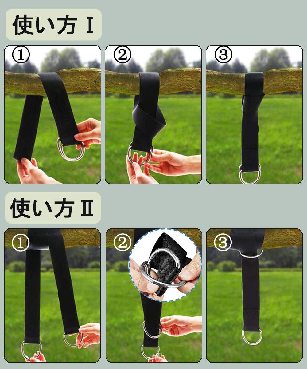 ブランコ ハンモック 固定用ベルト 150cm 耐荷重量1000kg 安全 耐摩耗 滑り止め 簡単設置 カラビナ2個 専用収納袋1個