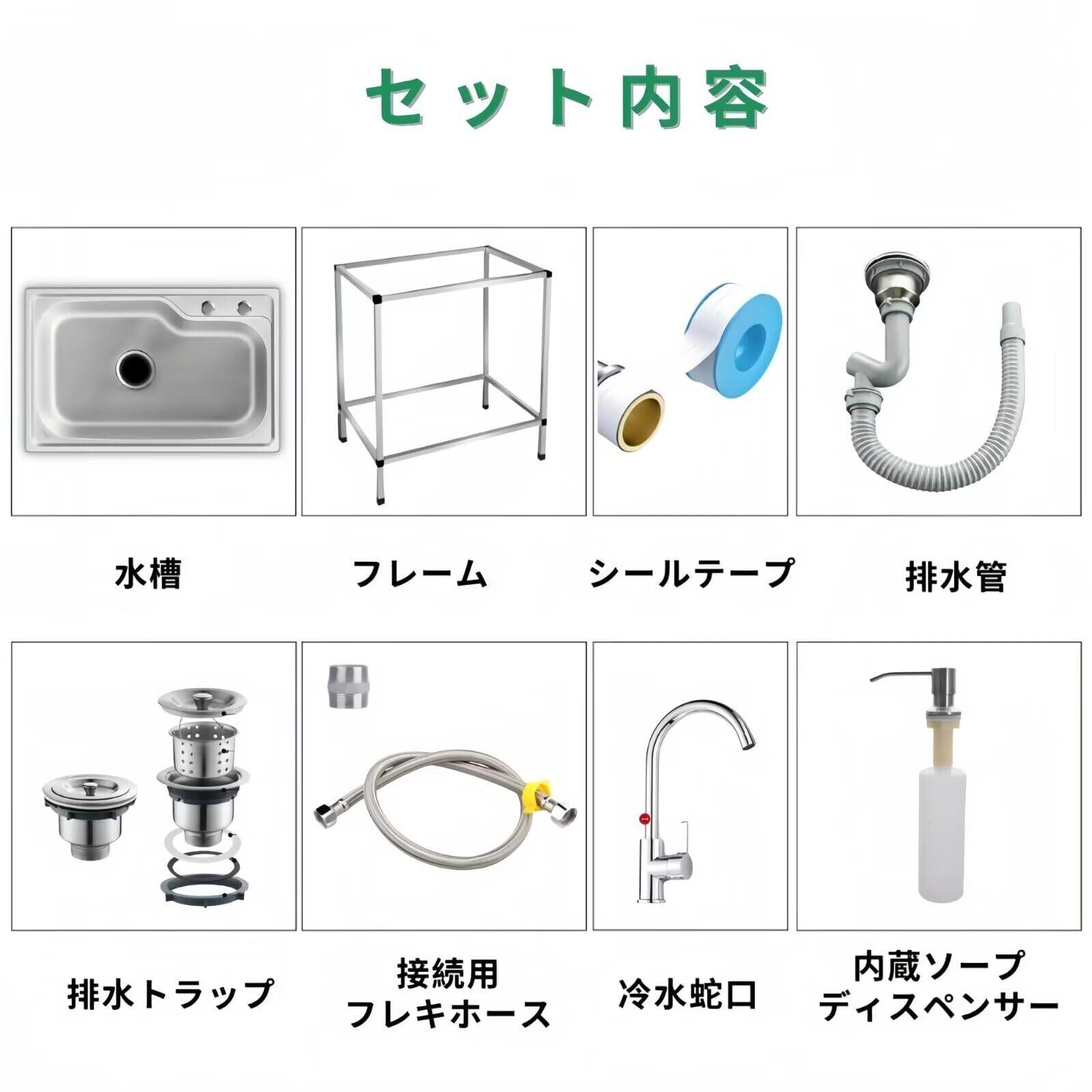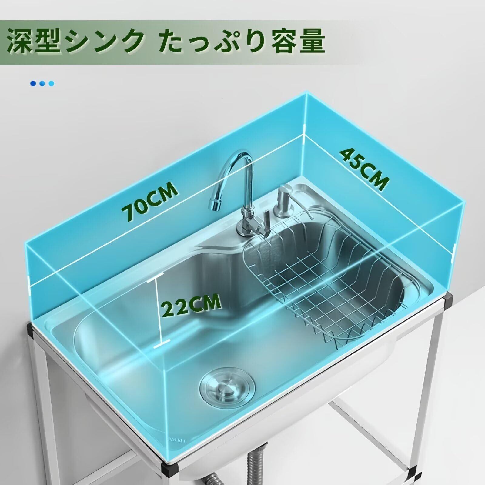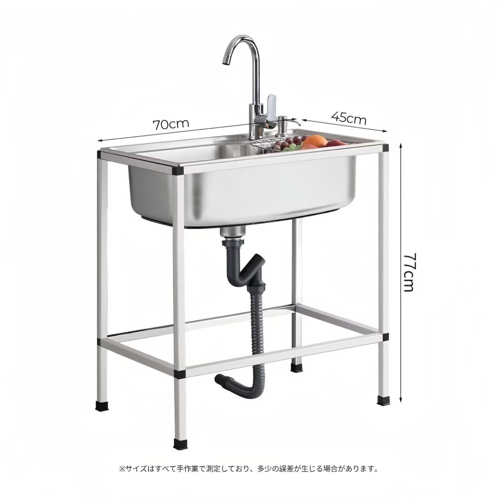 ガーデンシンク キッチン用流し台 オールステンレス製 長さ70×幅45×高さ77cm 水が飛散しにくい 屋外作業 工具不要 簡易シンク 屋外 コンパクト 工場 農園 ステンレスシンク
