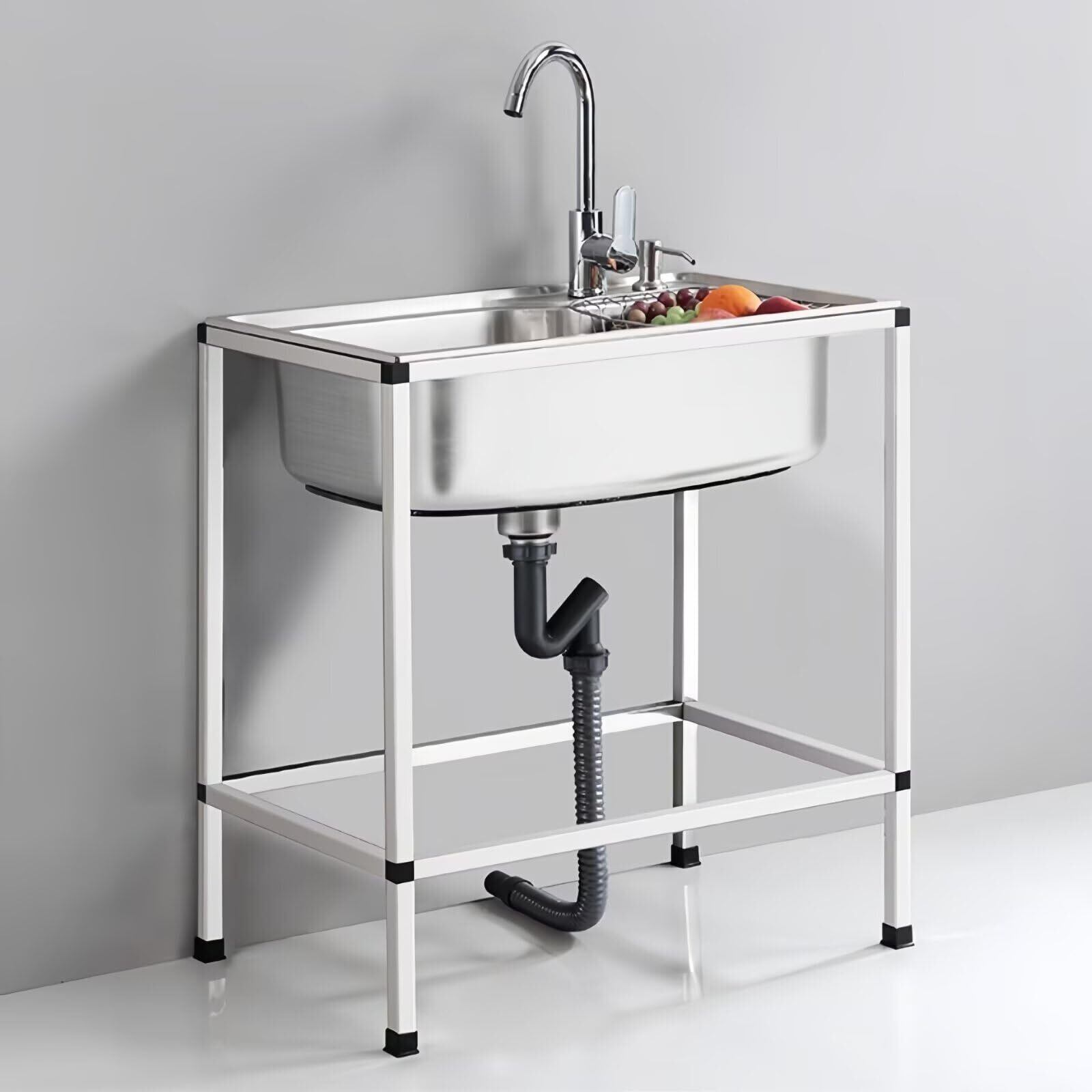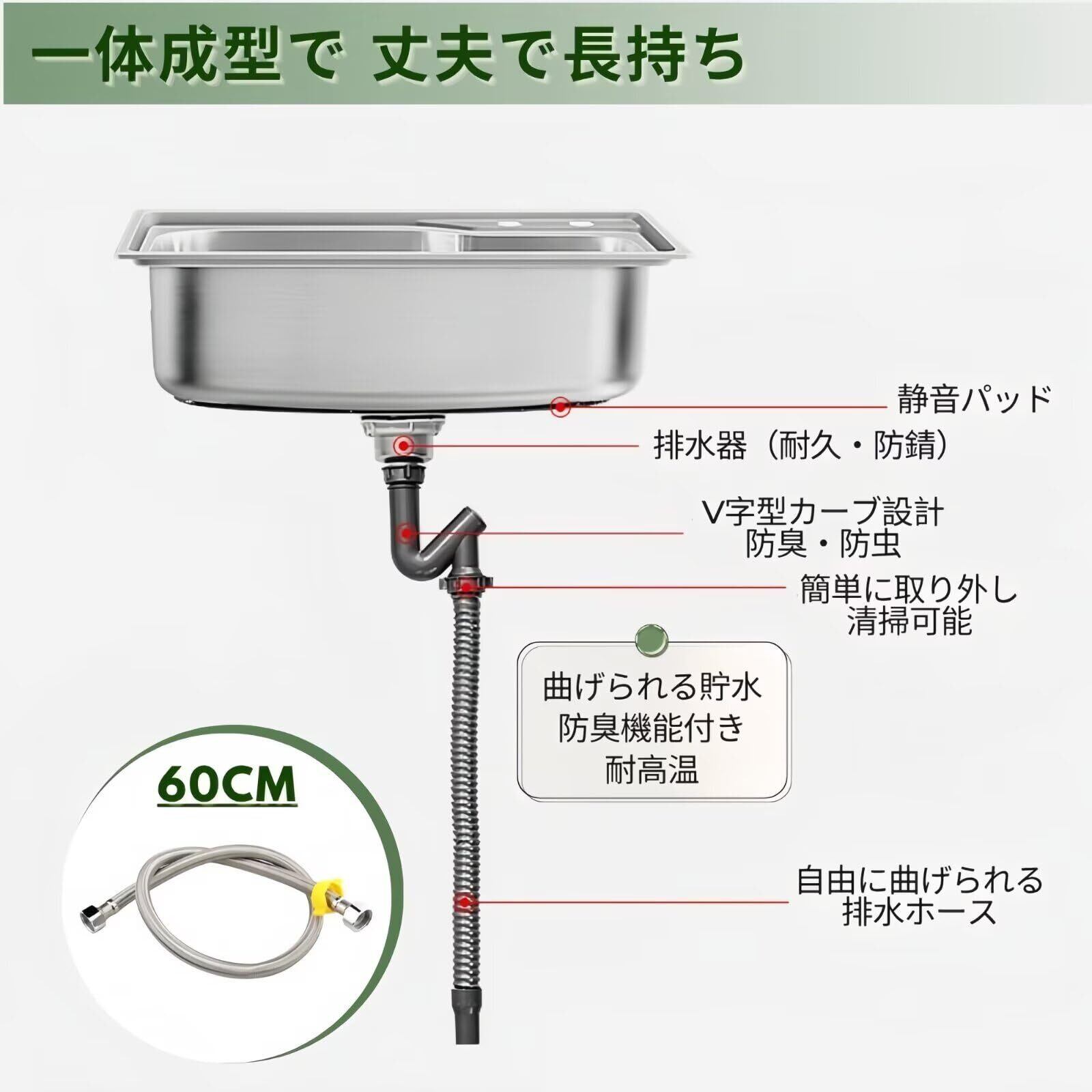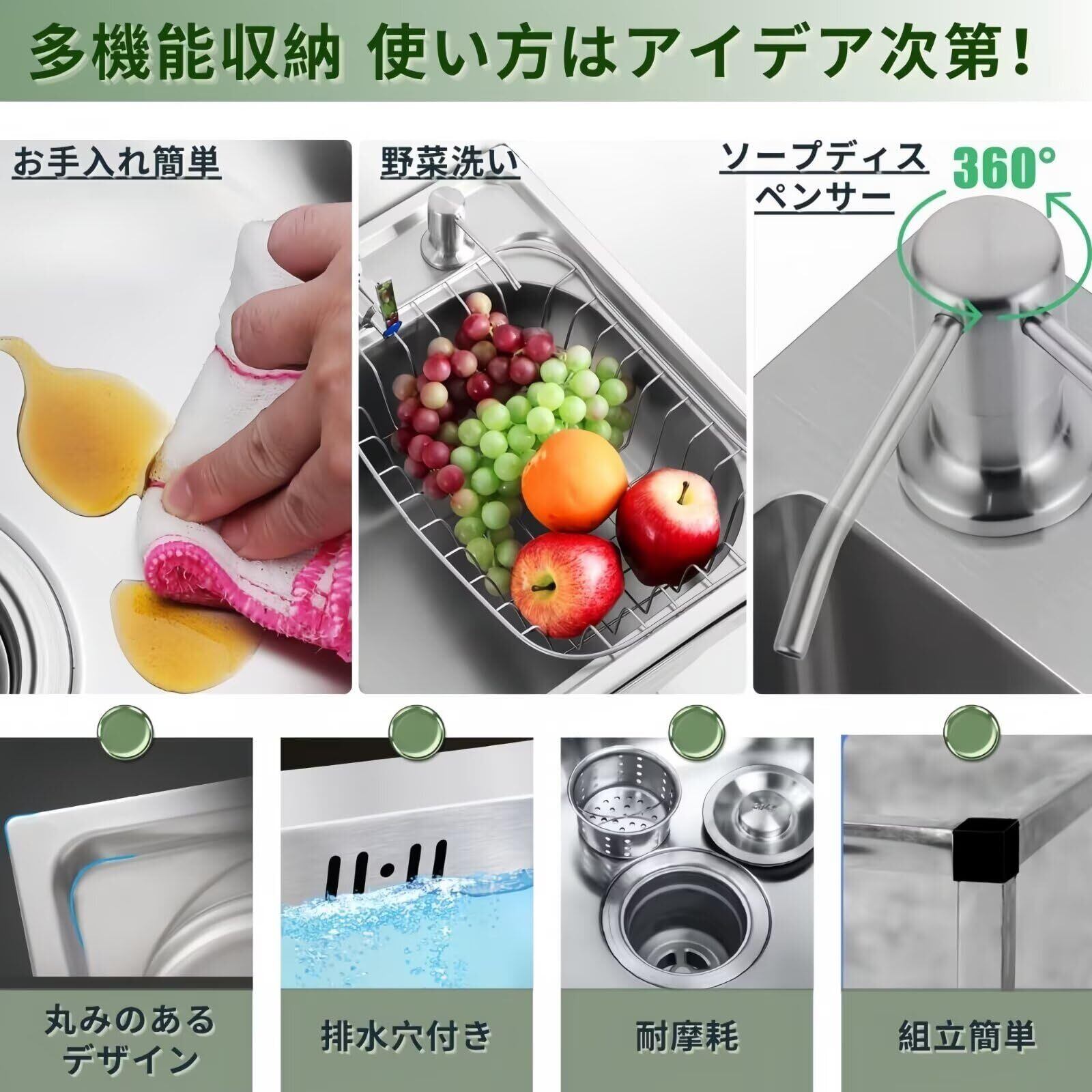 ガーデンシンク キッチン用流し台 オールステンレス製 長さ70×幅45×高さ77cm 水が飛散しにくい 屋外作業 工具不要 簡易シンク 屋外 コンパクト 工場 農園 ステンレスシンク