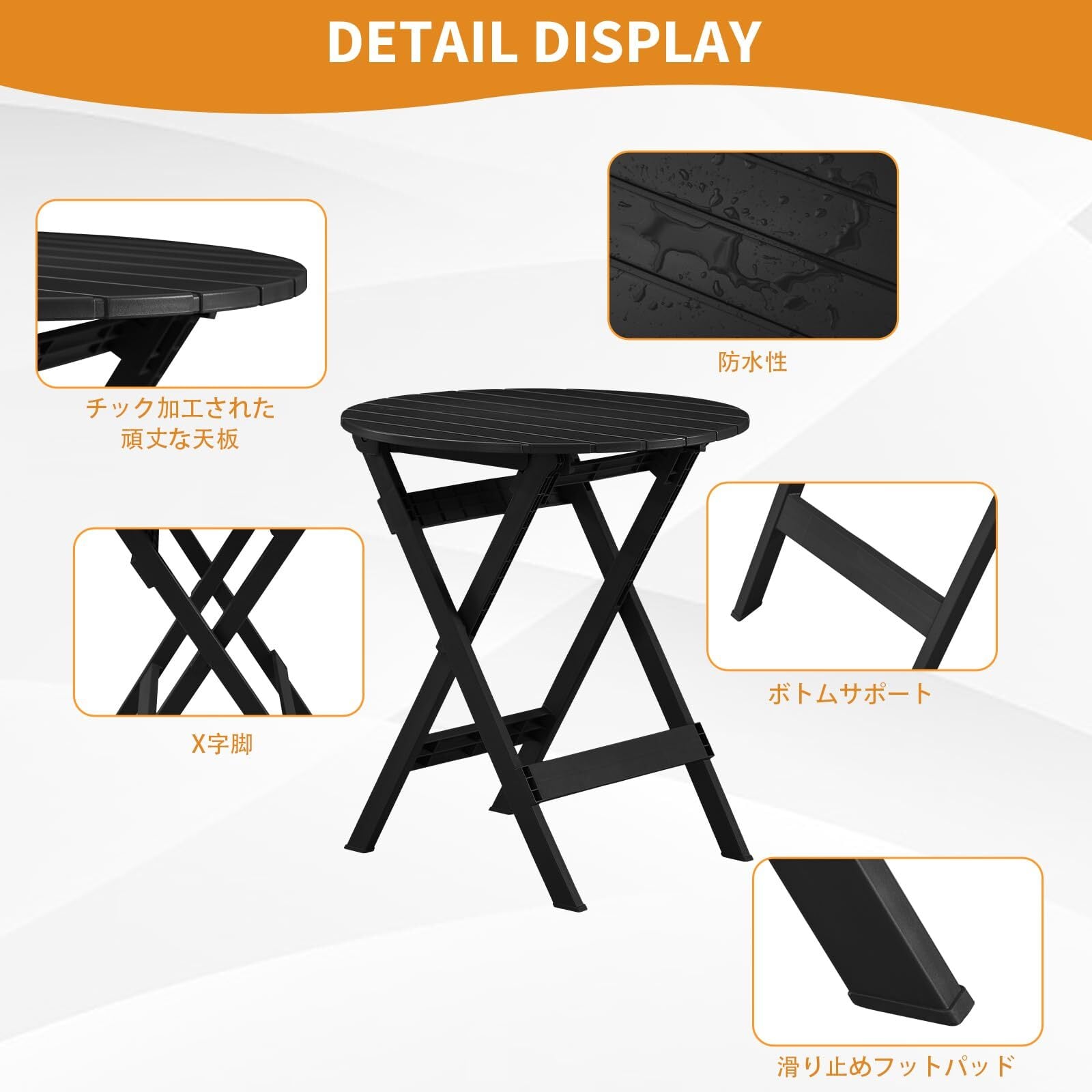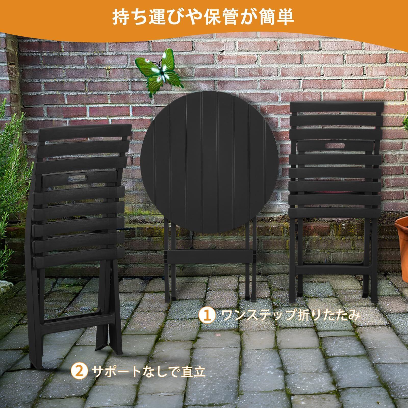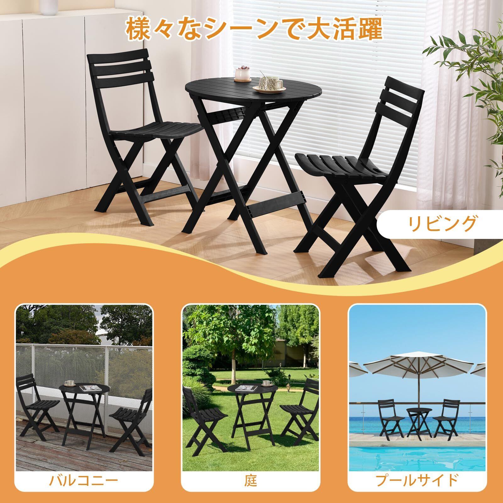 BOOSDEN ガーデンテーブル 3点セット アウトドア 折りたたみ 椅子テーブルセット ベランダ バルコニー 椅子セット 室内/屋外 庭 イベント 黒色