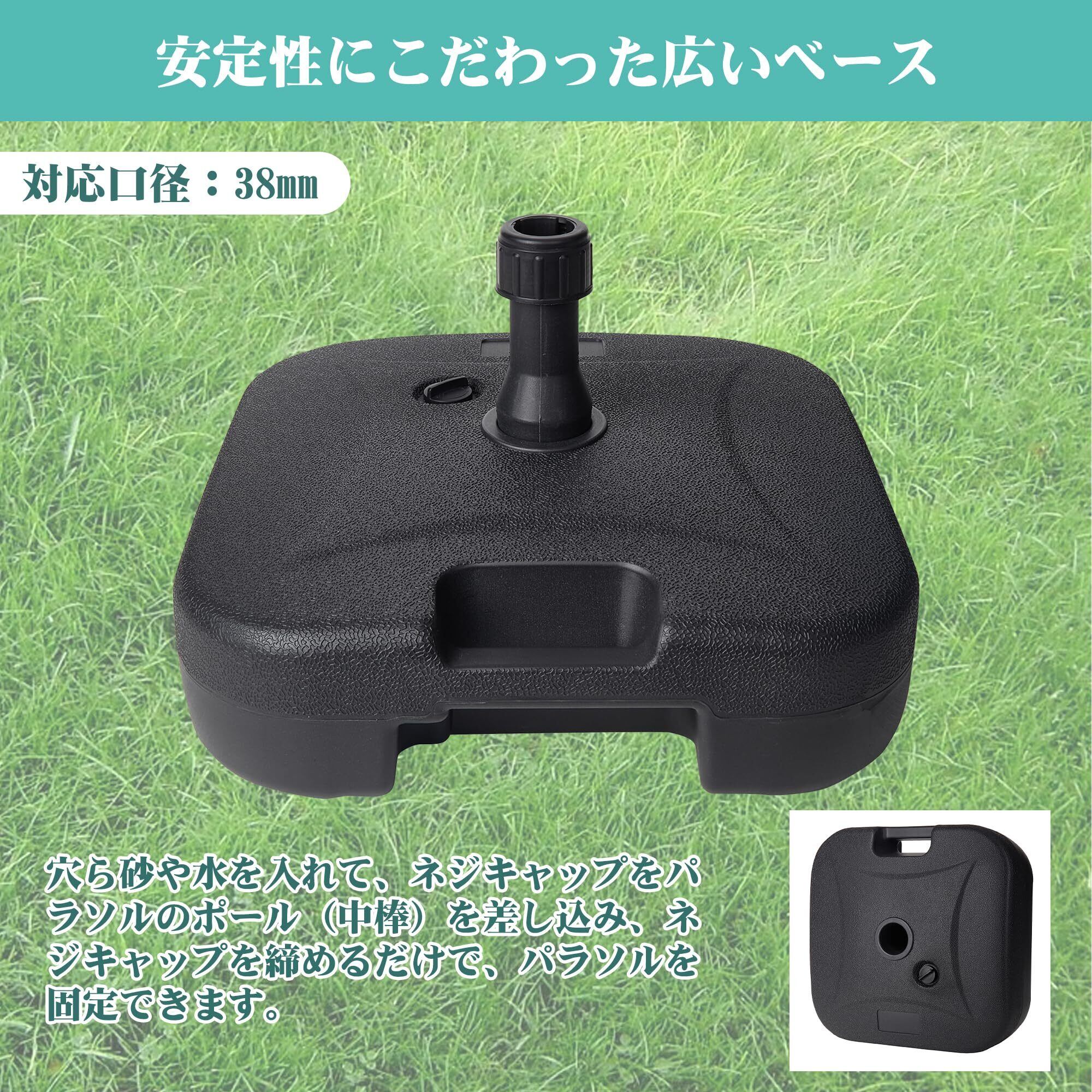 VECELO パラソルベース パラソル土台 幅45x奥行45x高さ26㎝ 38mm口径適用 水充填 砂充填 ベースのみ パラソルスタンド 完成品 簡単設置 キャンプ用品 風に強い アウトドア ガーデンパラソル用ベース キャンピング カフェ プール 釣り ベランダ ビーチ 公園 ブラック