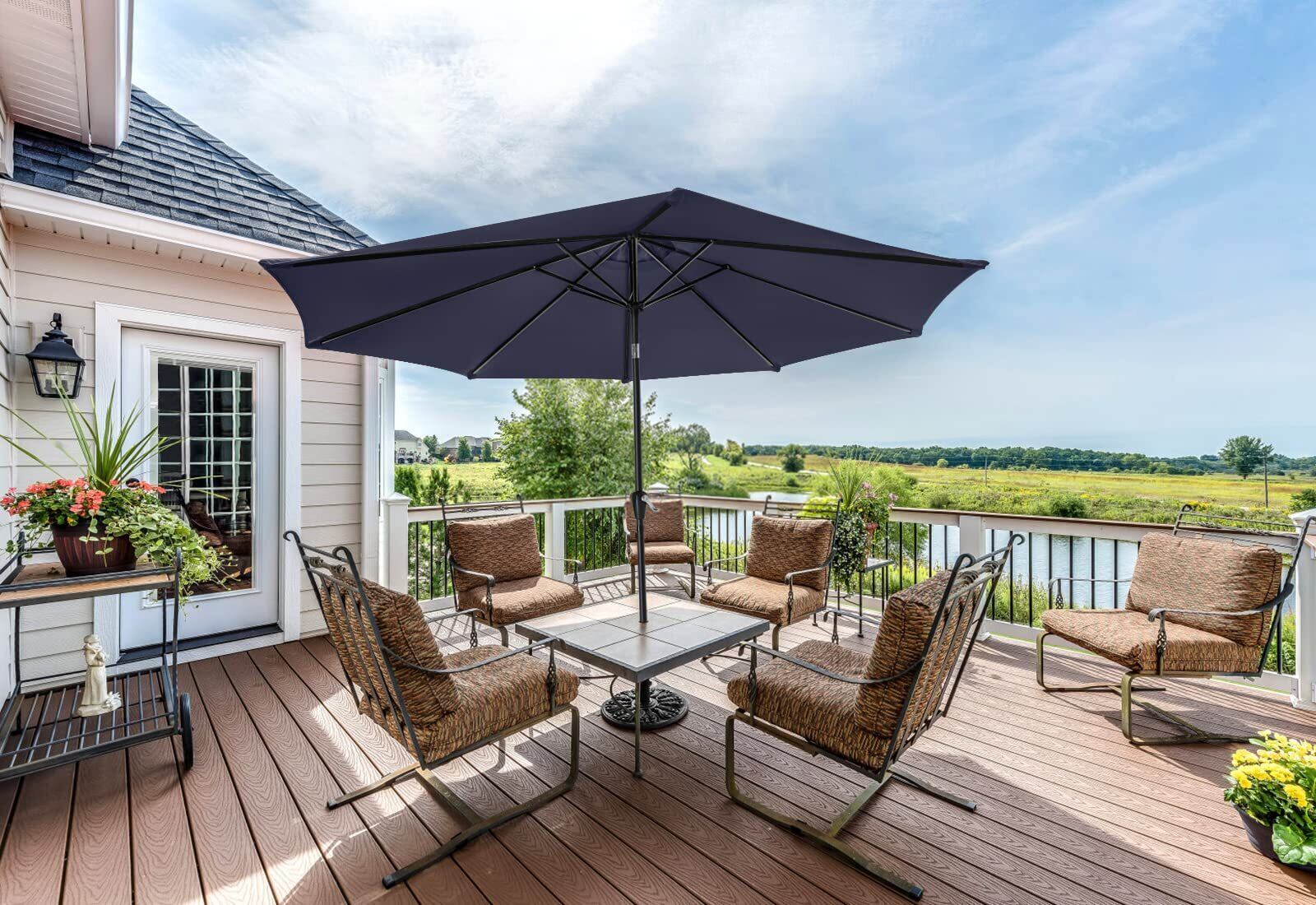 マスターキャノピー(MASTERCANOPY) ガーデンパラソル 直径230cm / 270cm × 高さ203cm / 240cm 角度調節可能 ハンドル回転式 日よけ 撥水 庭 アウトドア (270cm,ネイビーブルー)