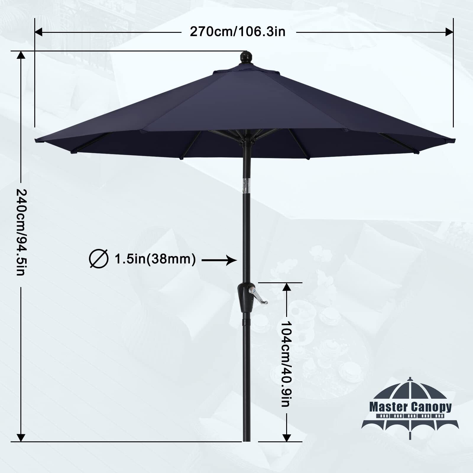 【特別価格】マスターキャノピー(MASTERCANOPY) ガーデンパラソル 直径230cm / 270cm × 高さ203cm / 240cm 角度調節可能 ハンドル回転式 日よけ 撥水 庭 アウトドア (270cm,ネイビーブルー)