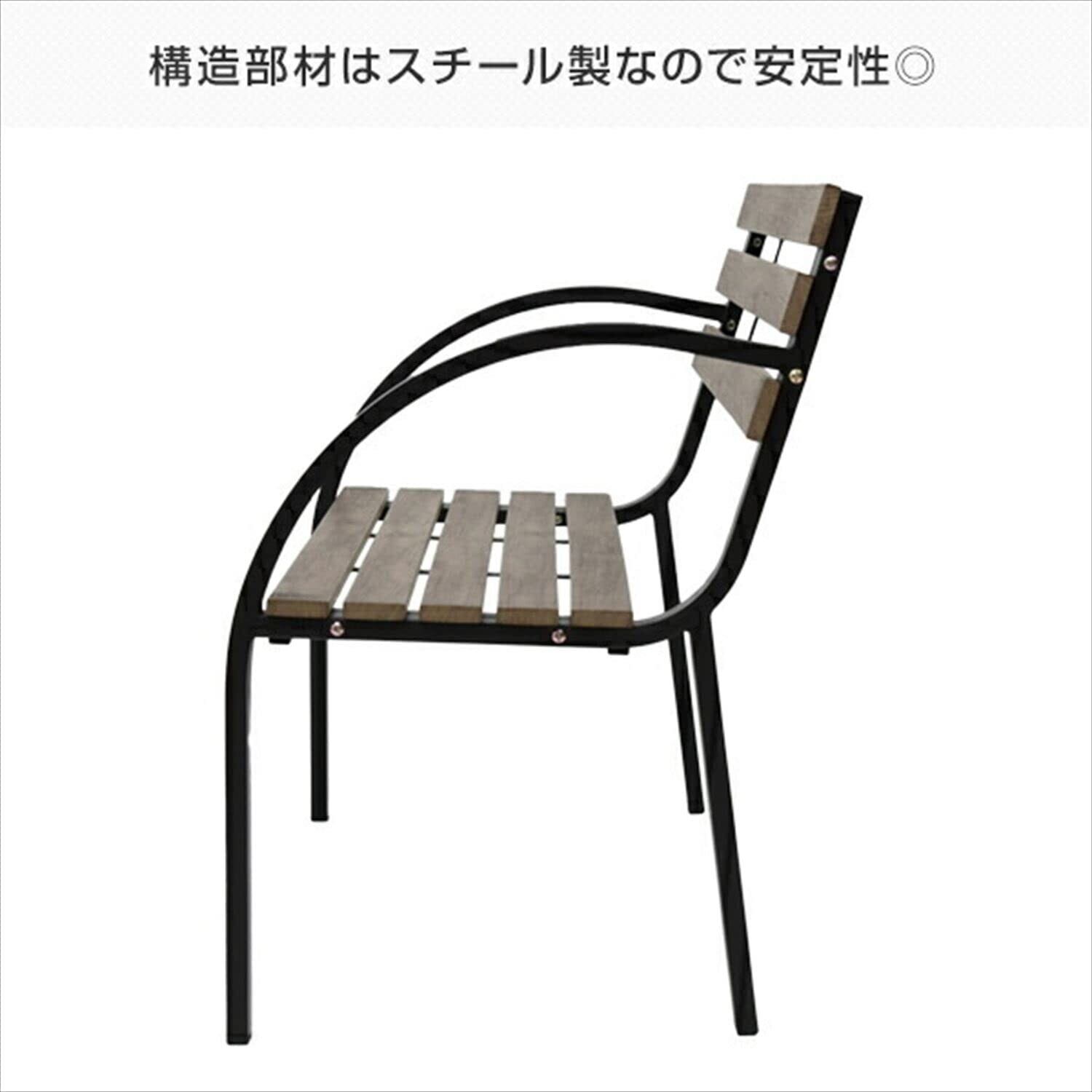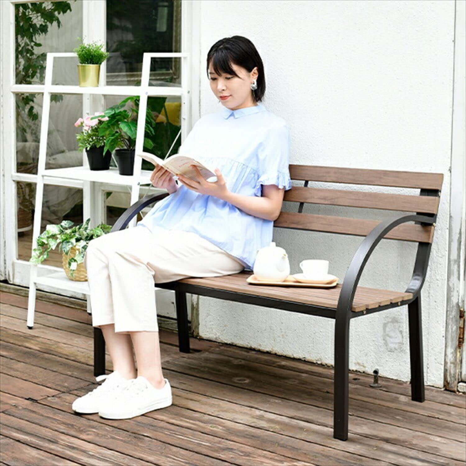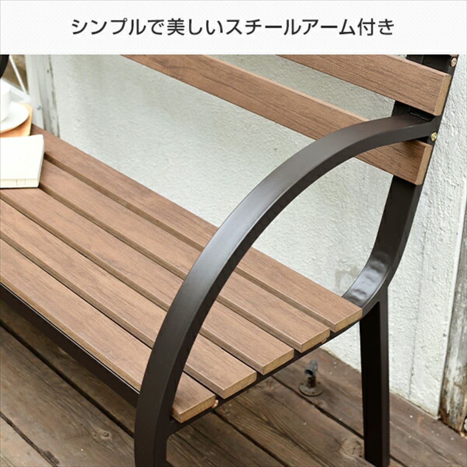 ●天然木のような自然な木の質感を楽しめる木目調のアーム付きガーデンベンチです。