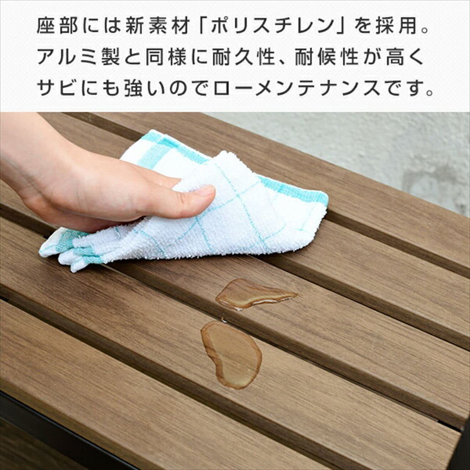 【高い耐久性】座部には新素材「ポリスチレン」を採用。耐久性、耐候性が高くサビにも強い。また、夏場の直射日光でも座部が熱くなりにくい。