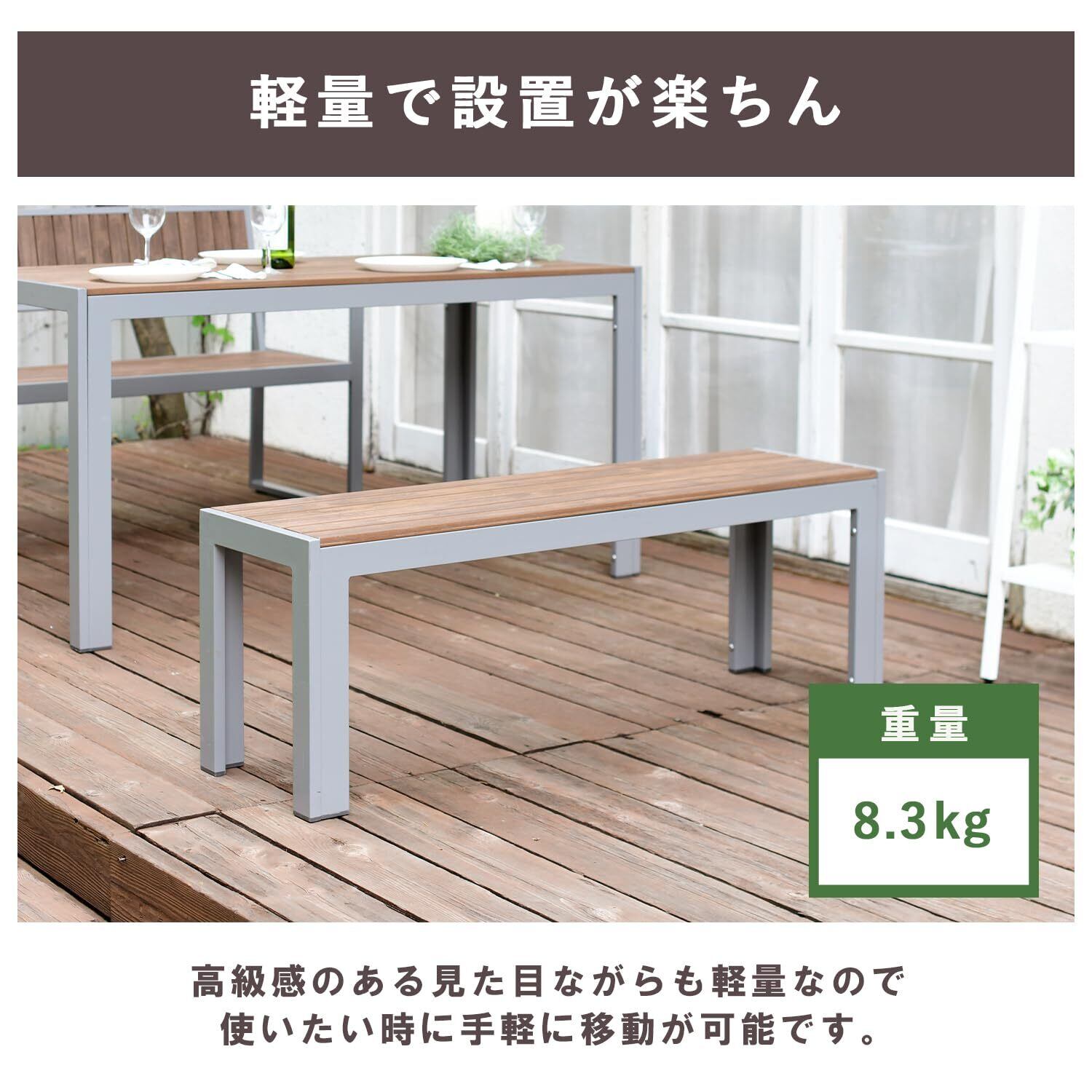 ●天然木のような自然な木の質感を楽しめる木目調の背無しガーデンベンチです。