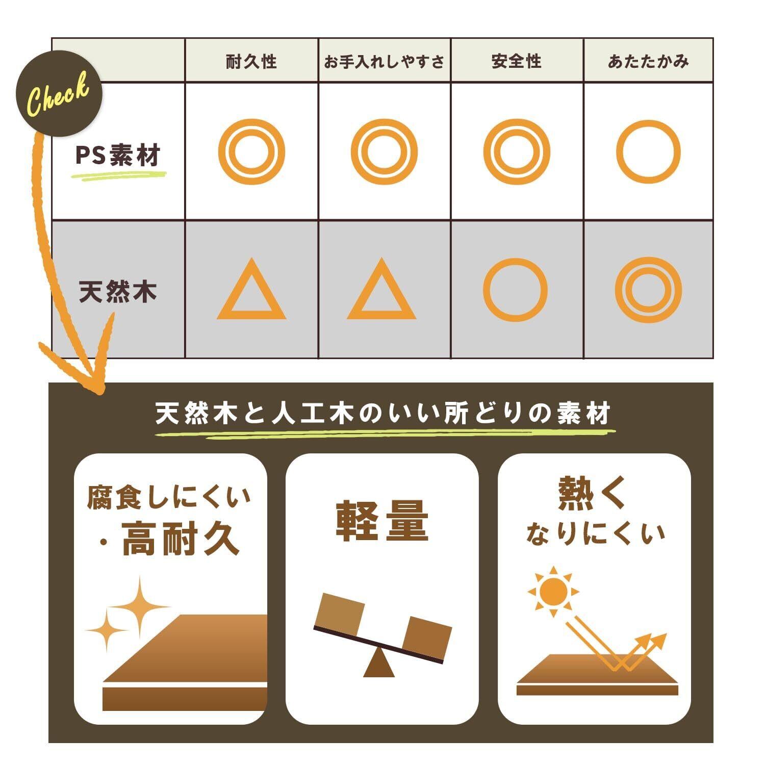 ●耐久性が高く雨や水にも強いポリスチレンを採用でローメンテナンスを可能にしました。
