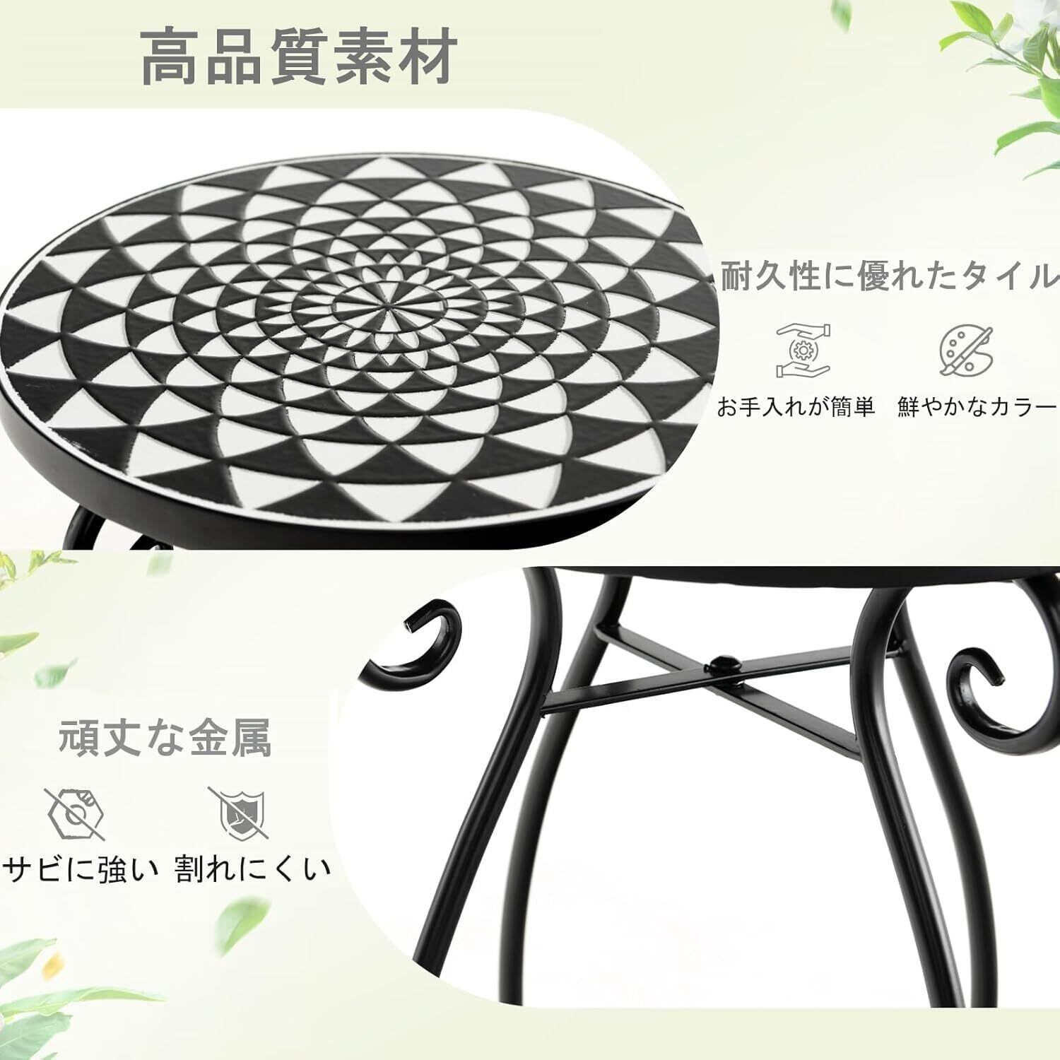 【特別価格】TANGKULA パティオサイドテーブル Φ30x高さ50cm テラステーブル タイル 飾り台 鉢置き台 花台 防水 ガーデンテーブル コーヒーテーブル ソファサイド 庭 玄関 リビング 室内 屋外 おしゃれ モザイク模様 多機能 (ブラック)