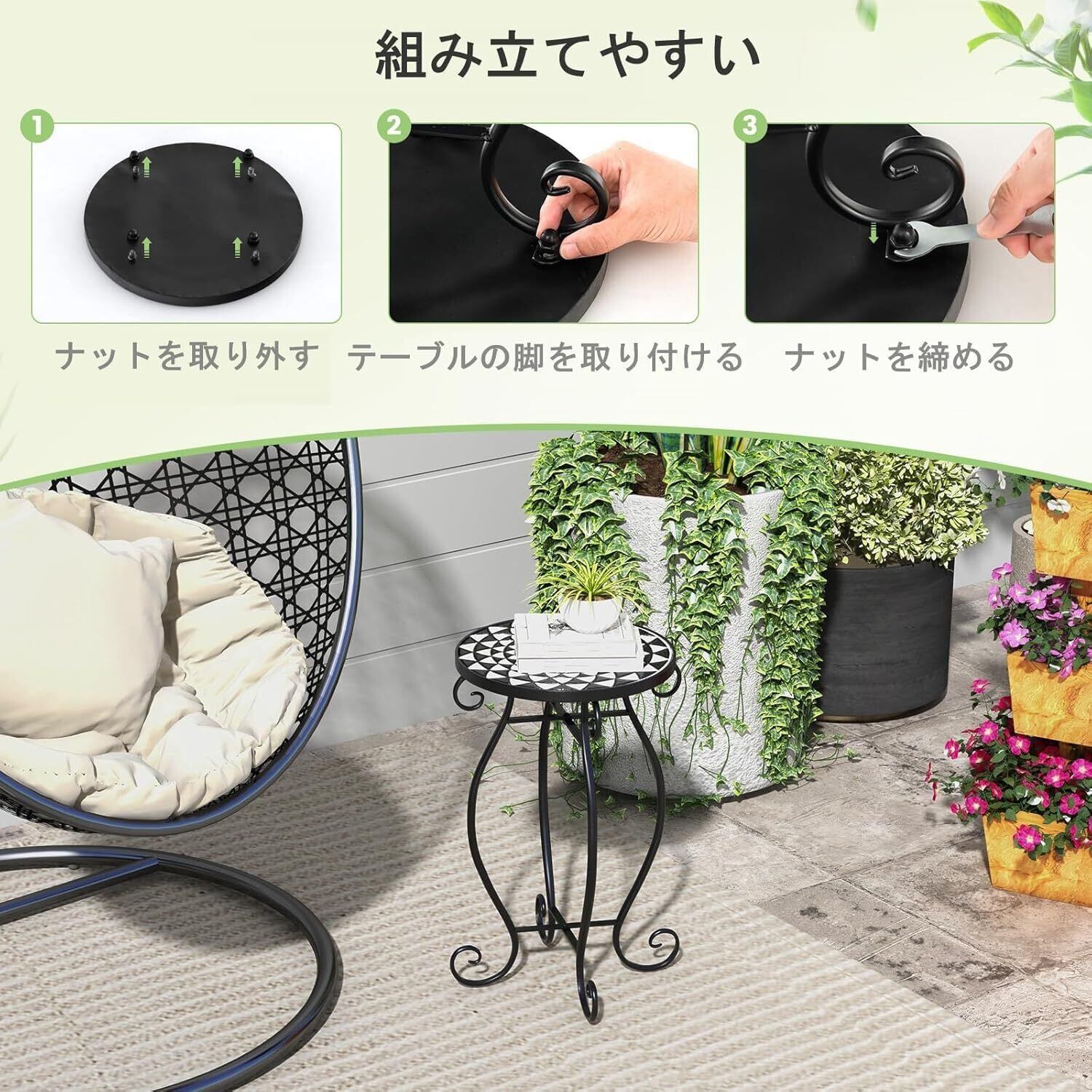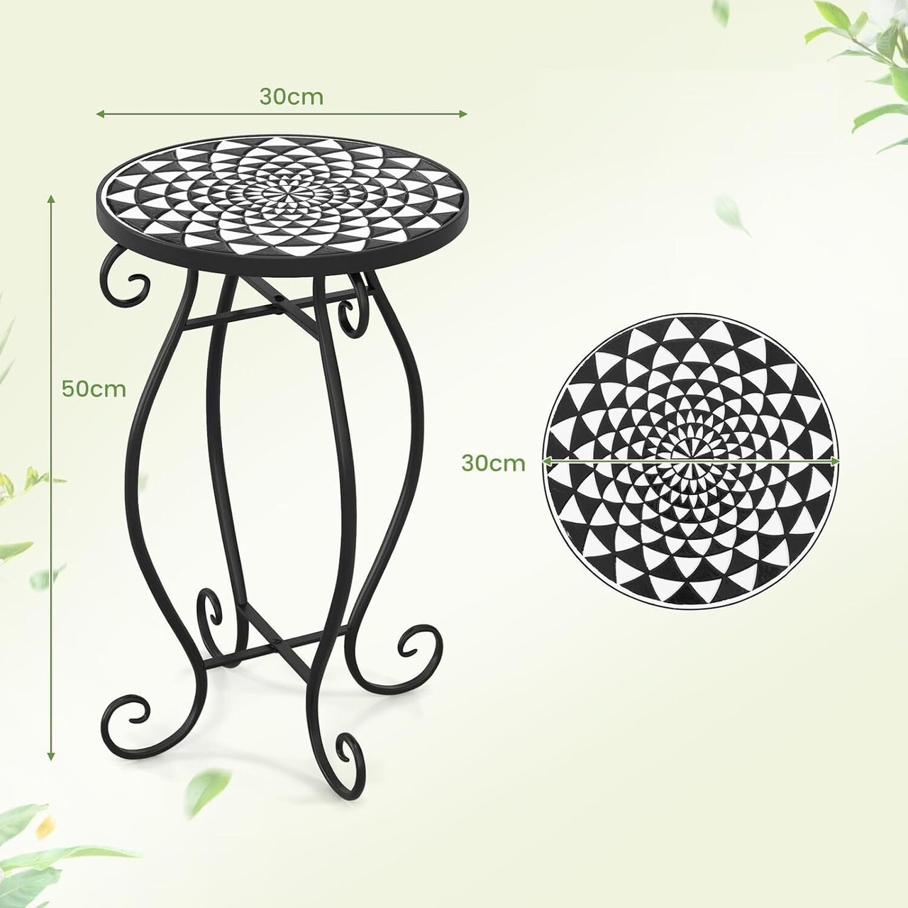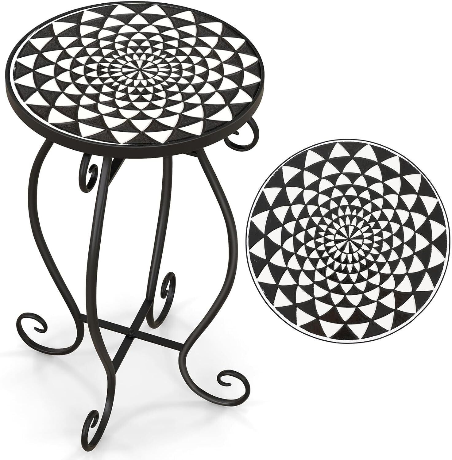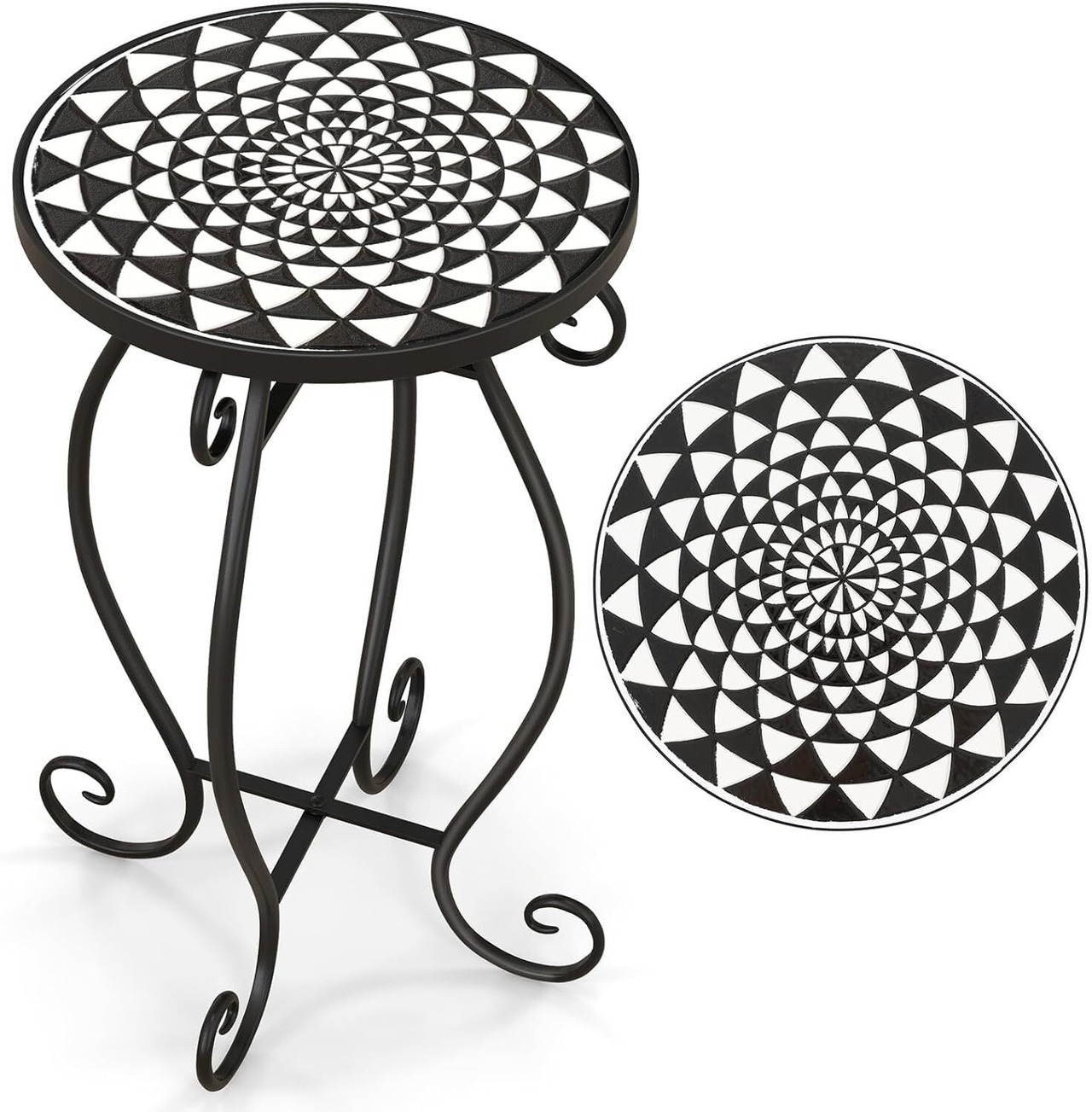TANGKULA パティオサイドテーブル Φ30x高さ50cm テラステーブル タイル 飾り台 鉢置き台 花台 防水 ガーデンテーブル コーヒーテーブル ソファサイド 庭 玄関 リビング 室内 屋外 おしゃれ モザイク模様 多機能 (ブラック)