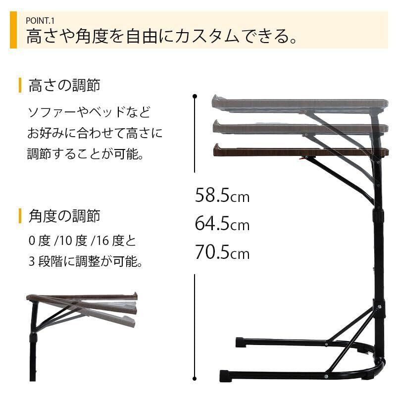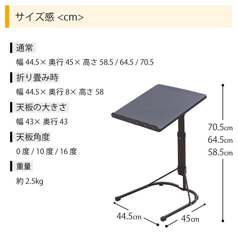 ビータ(Vita) マルチテーブル ブラック 幅44.5×奥行45×高さ58.5/64.5/70.5cm 作業テーブル サイドテーブル 角度調整 高さ調整