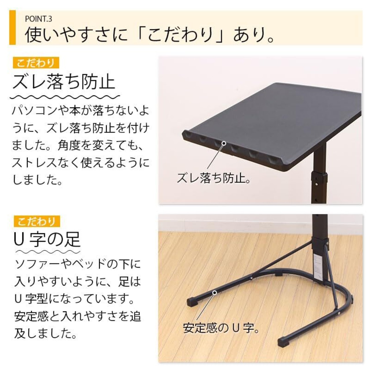 角度と高さ調整で使いやすい形に