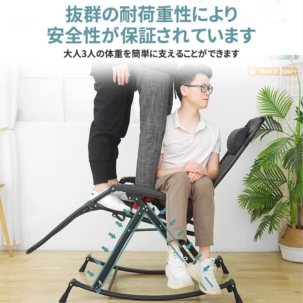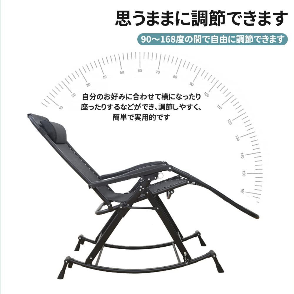[Esluve]ロッキングチェア 折り畳み式 揺れる椅子 背もたれ調整可能 リラックスチェア 折りたたみ昼寝チェア 通気性 多機能 心地よく揺れ ブラック[メーカー一年]