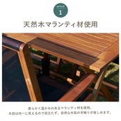 【天然木の手触り】柔らかく温かみのあるマランティ材を使用したガーデンチェア。使い込むほどに味わいが増し、自然な木肌の手触りが楽しめます。