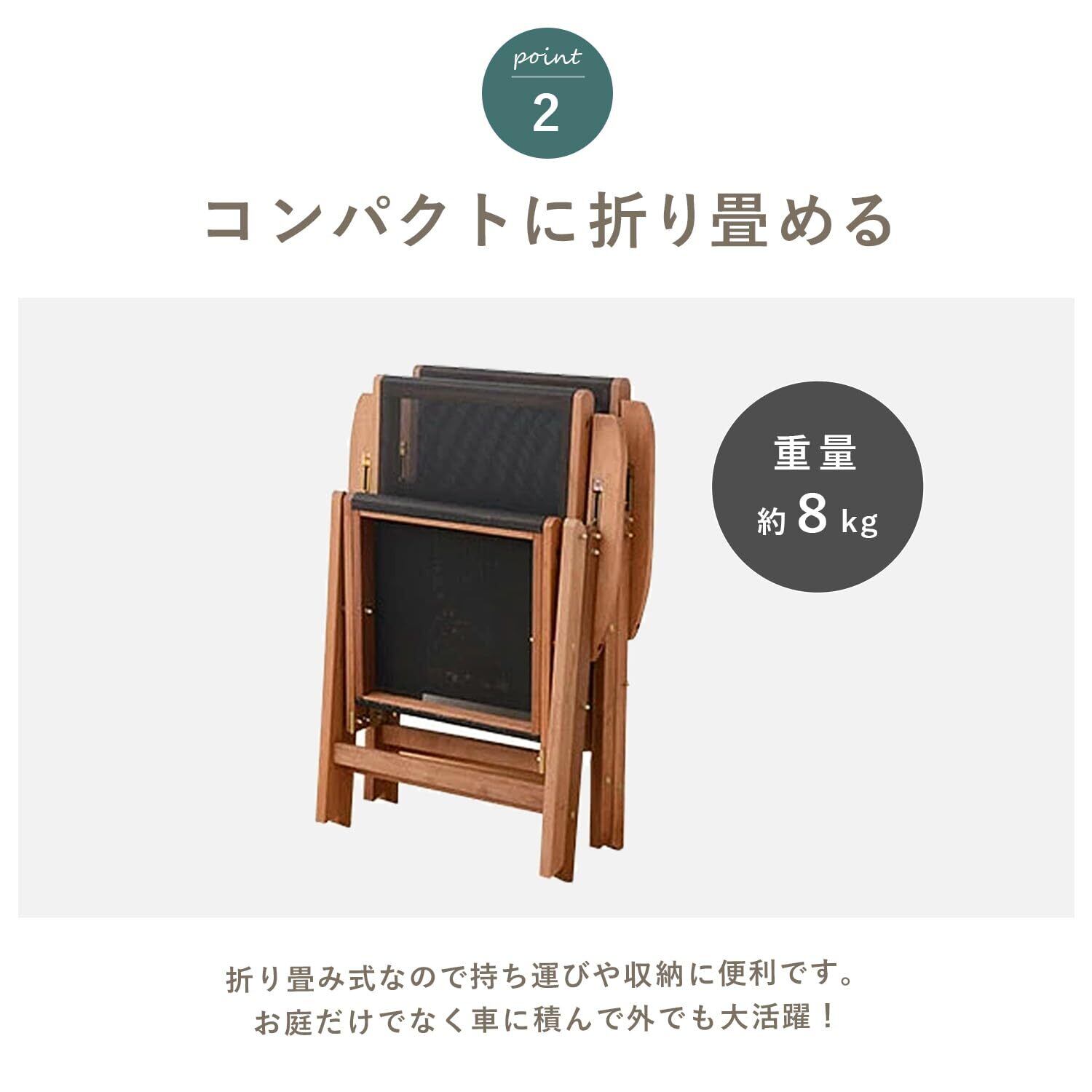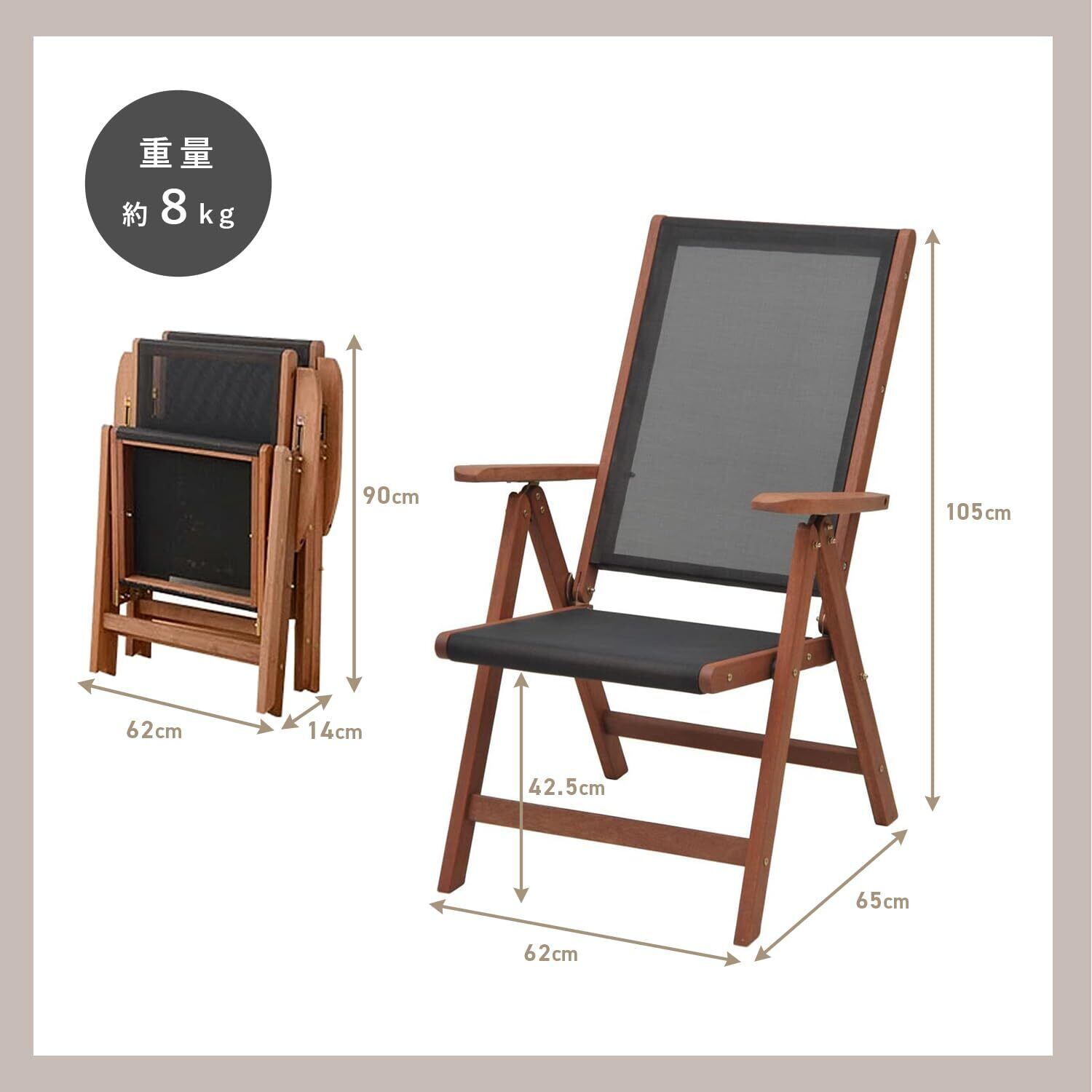 ガーデンマスター(Gardenmaster) 折りたたみガーデンチェア 幅62×奥行65×高さ105cm フォールディングチェア 木製 リクライニング7段階 メッシュ仕様 お庭 ベランダ テラス バルコニー MFC-259D(BK) ブラック